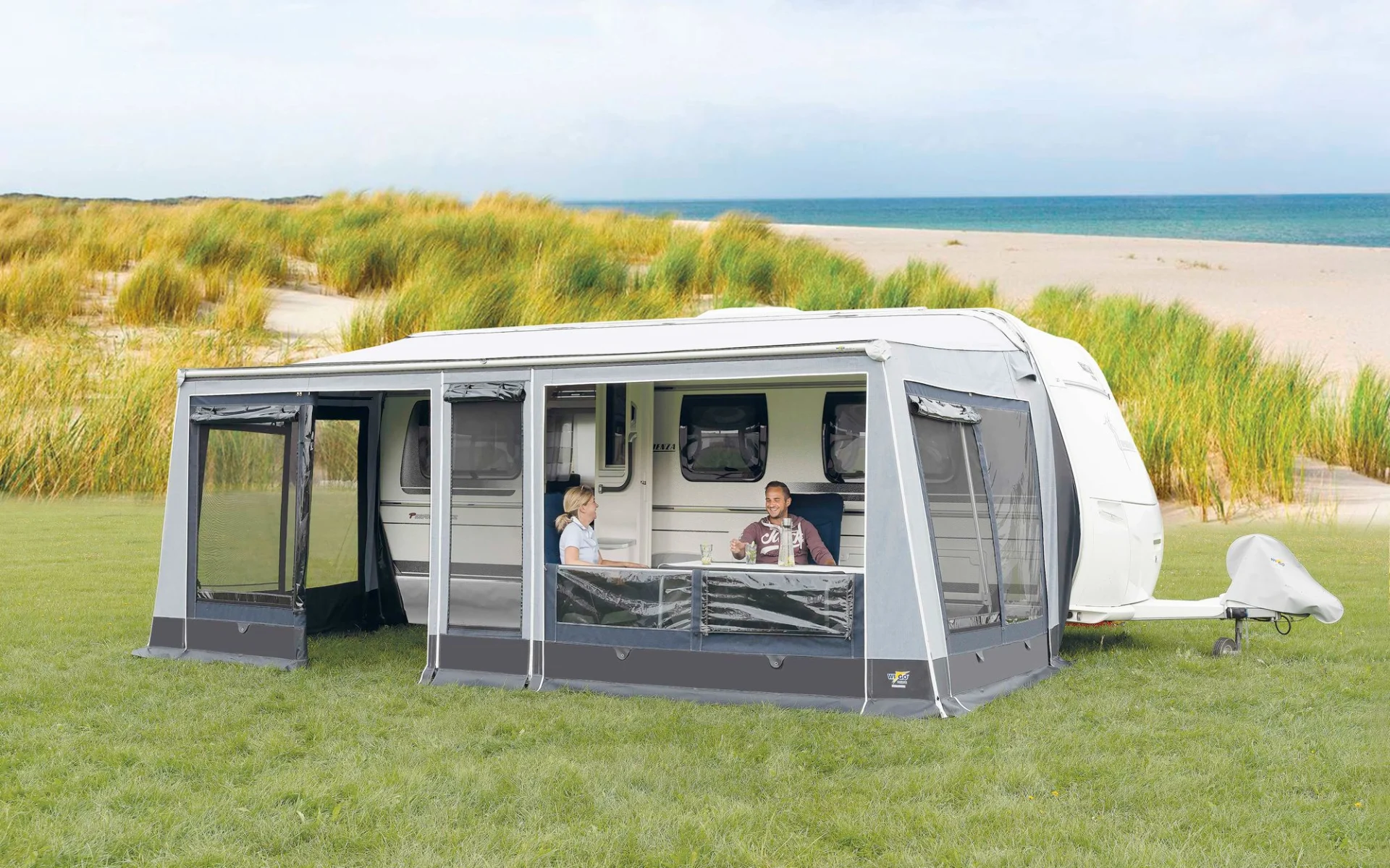Für alle, die auch beim Camping nicht auf Komfort verzichten möchten: Höchste Stoffqualität, edelstes Design und maximale Qualität sorgen bei diesem Markisenzelt für einen entspannten Urlaub der Extraklasse.