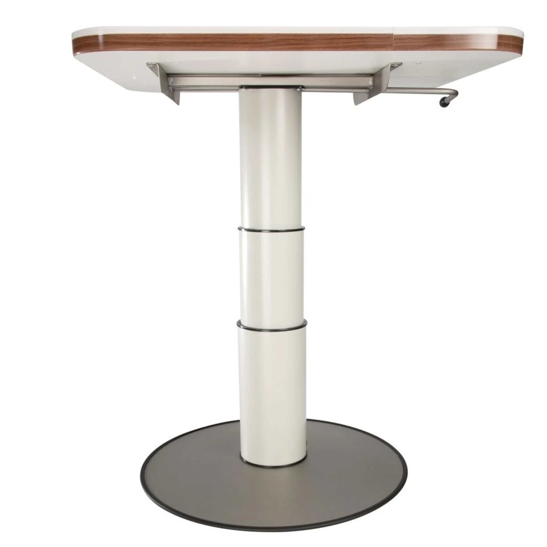 Ideal für die Nutzung im Wohnwagen. Höhe einstellbar von 320 – 695 mm. Die obere Höhe bis Unterkante Tischplatte beträgt 69,5 cm. Untere Höhe bis Unterkante Tischplatte ist 32 cm. Tischplatte ist nicht im Lieferumfang enthalten.