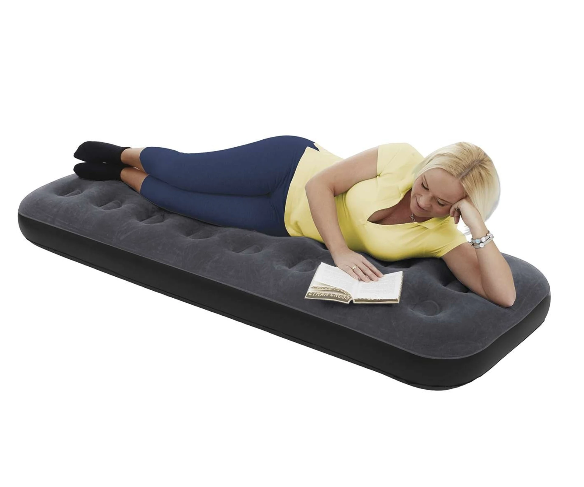 Egal ob als Camping-Matratze oder Gästebett, auf dem Luftbett schlummern Sie gemütlich ein. Ein hautfreundlicher beflockter Velour Stoff verziert die Liegefläche.