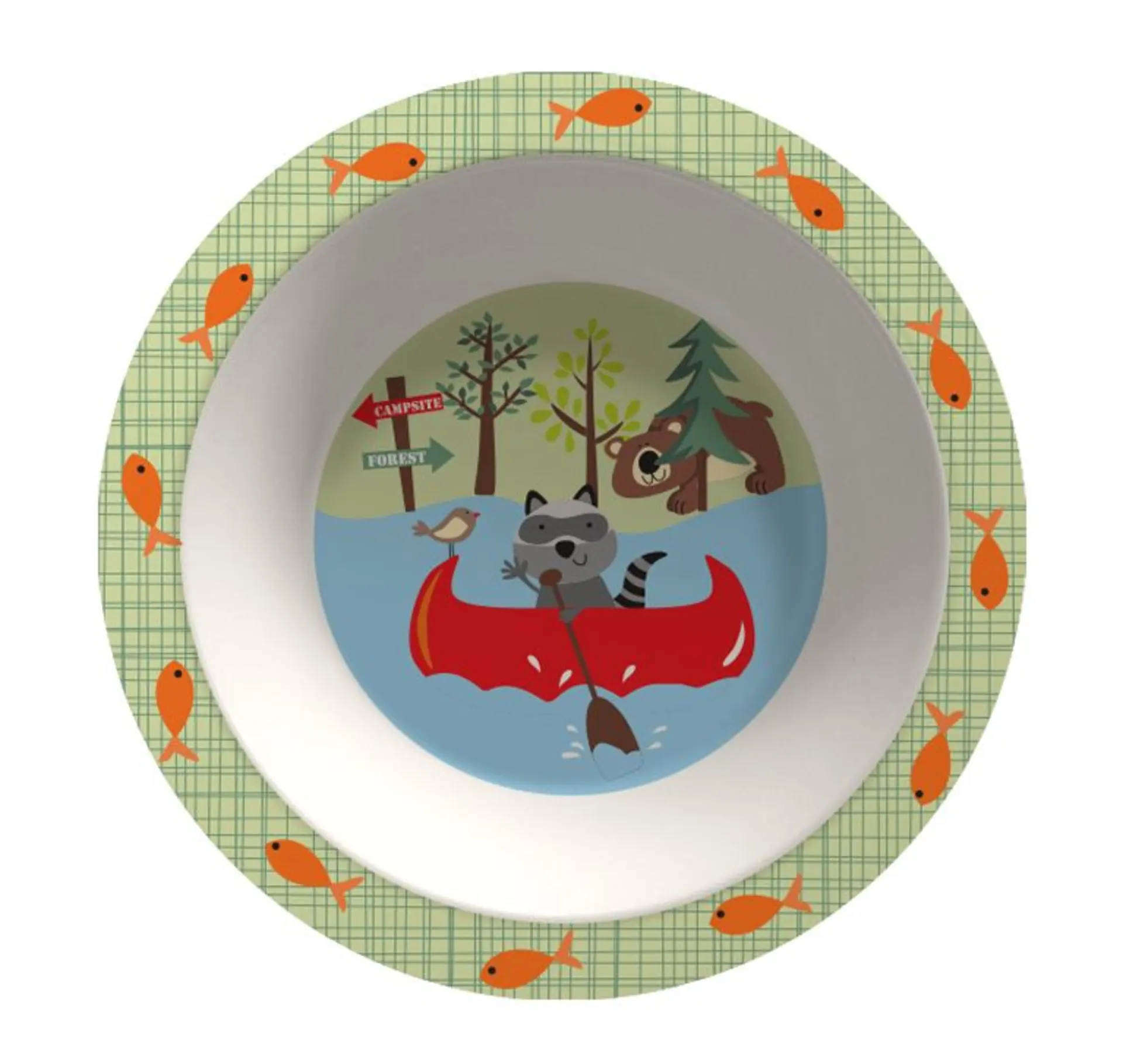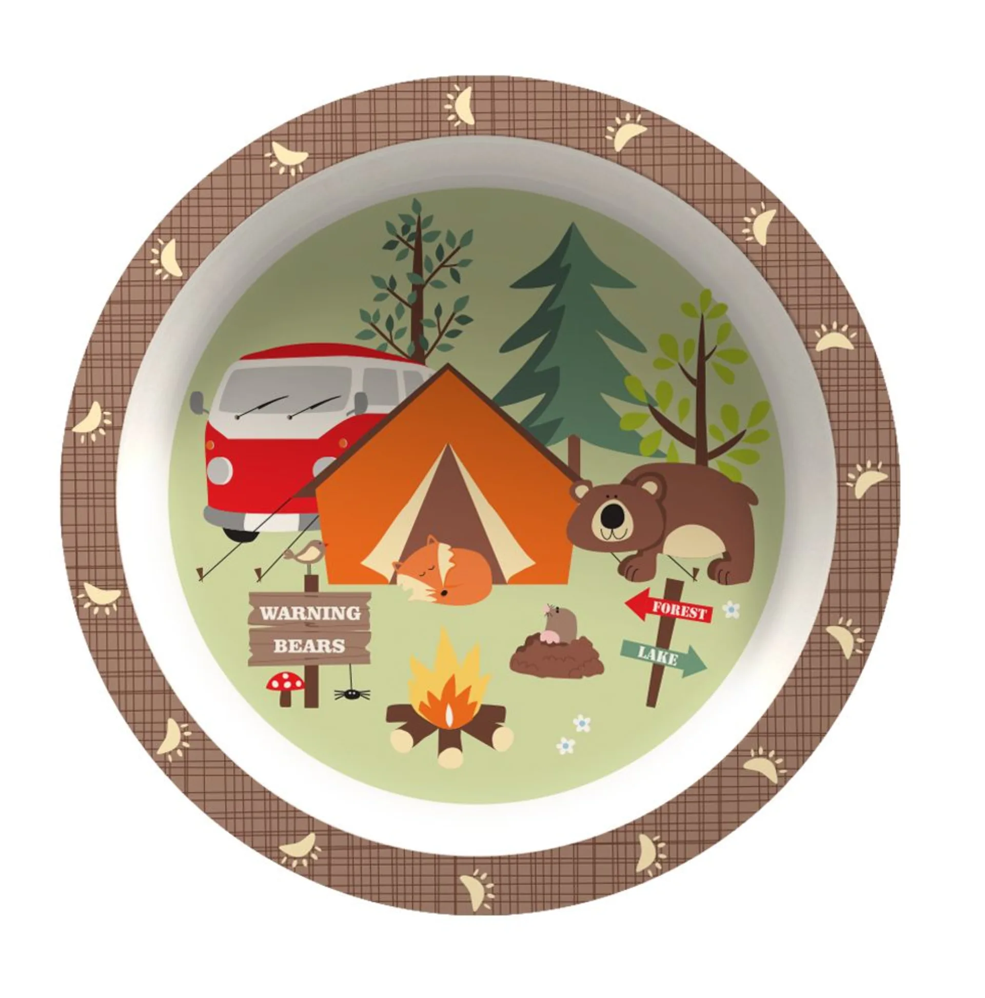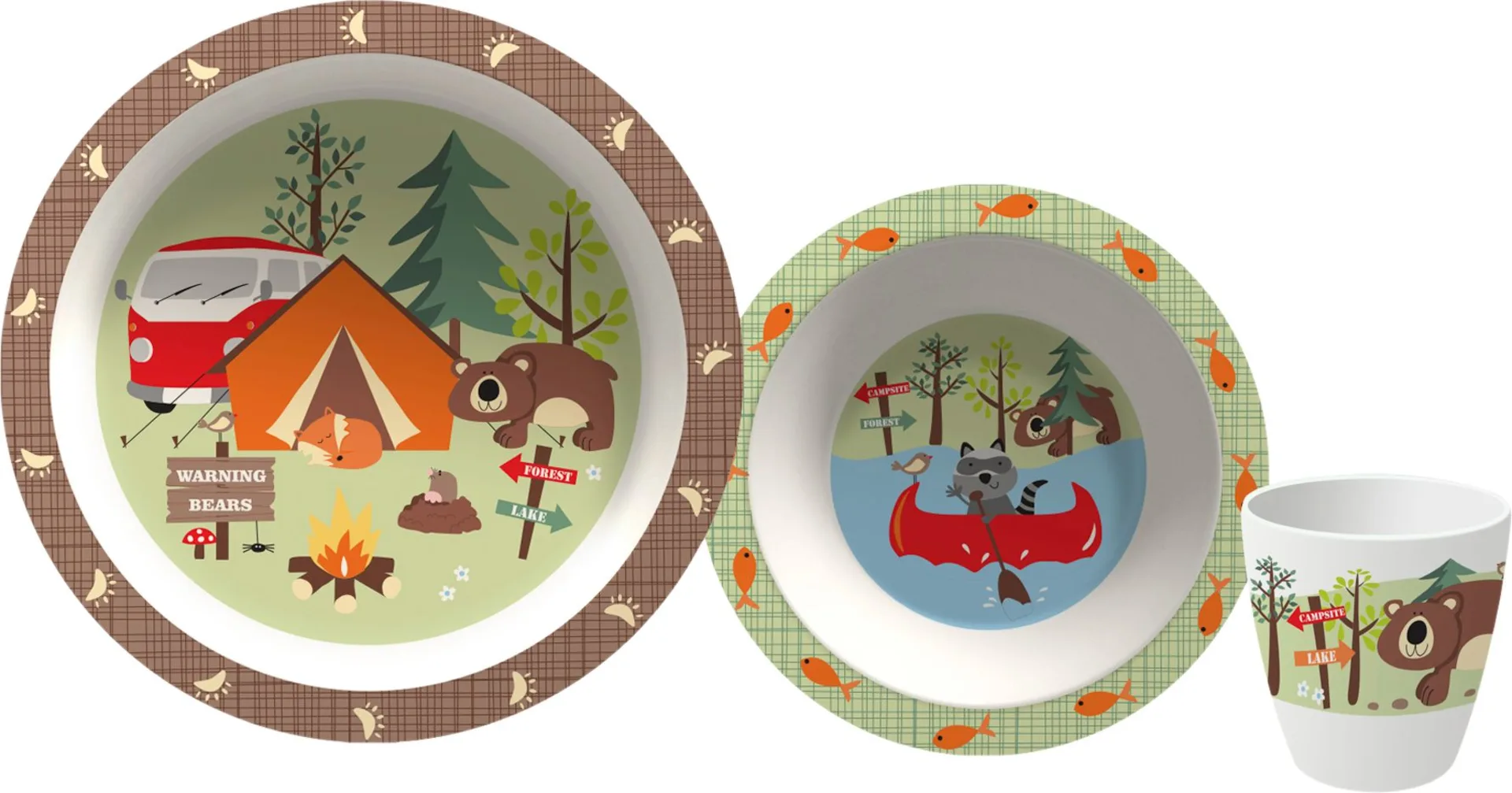 3teiliges Kindergeschirrset aus Melamin. Stabil, kratzfest, perfekt für das Campen geeignet.