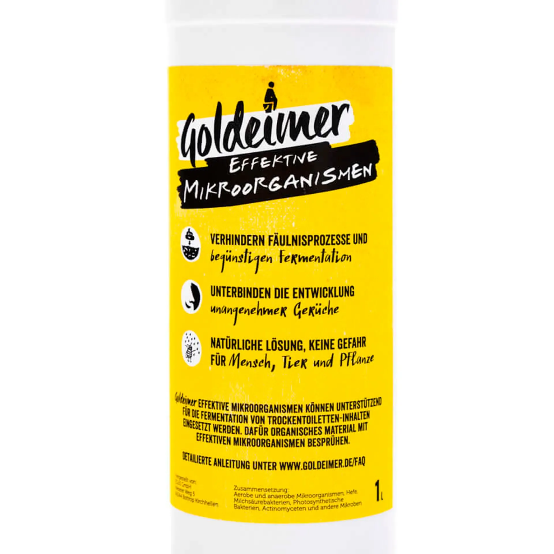 Der pH Wert sinkt durch diesen Fermentationsprozess unter 4 (= sauer) und krankheitserregende Keime werden inaktiviert. Man spricht auch von einer “sauren Hygienisierung”. Nebeneffekt dieses Prozesses ist, dass Nährstoffe, die bei der Kompostierung entweichen, fixiert und an der Pflanzenkohle angelagert werden. Die Fermentation ist ein wichtiger Schritt bei der Herstellung von Terra preta. Es werden Goldeimer »EMs« zwar noch andere Zauberkräfte nachgesagt. Von diesen wissenschaftlich nicht nachprüfbaren Effekten distanzieren wir uns allerdings.