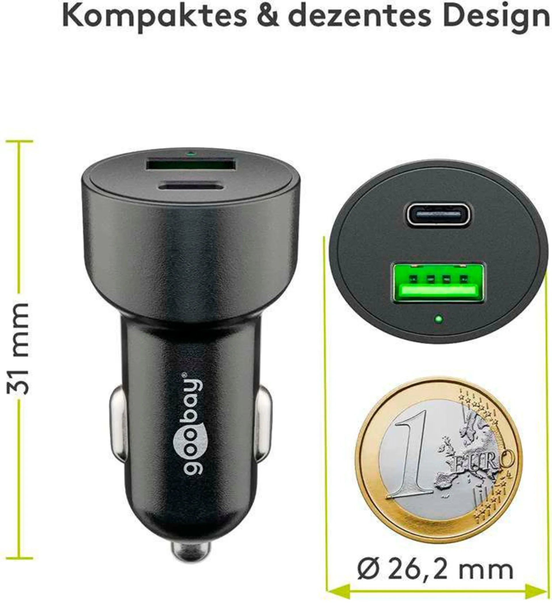 Das Ladgerät im Mini-Format lädt zwei Geräte gleichzeitig am Zigarettenanzünder über USB-A oder USB-C. Lädt bis zu 4x schneller als Standardladegeräte (in 30min. von 0% auf 50%). Schnellladegerät speziell für Apple iPhone und iPad.
