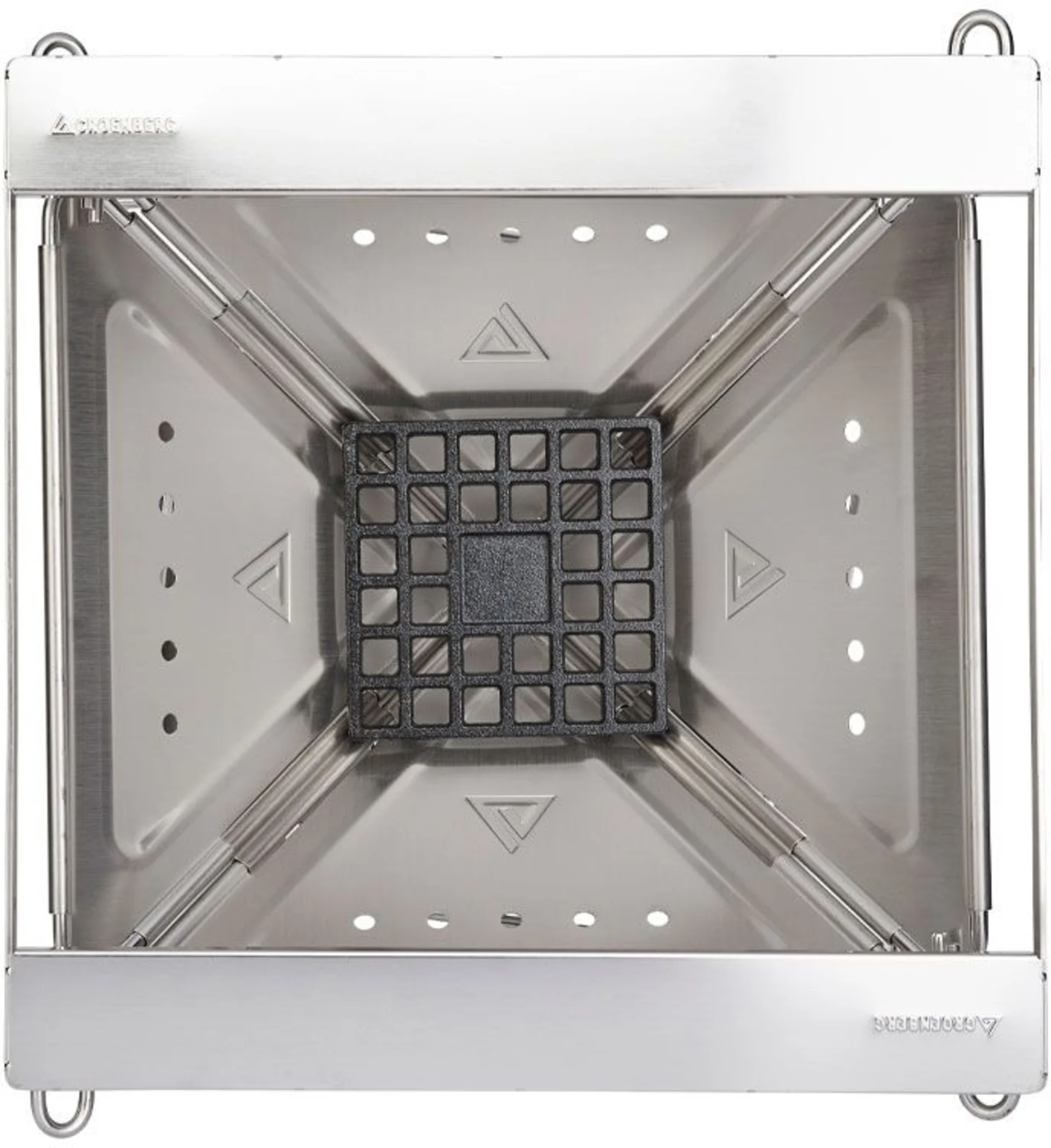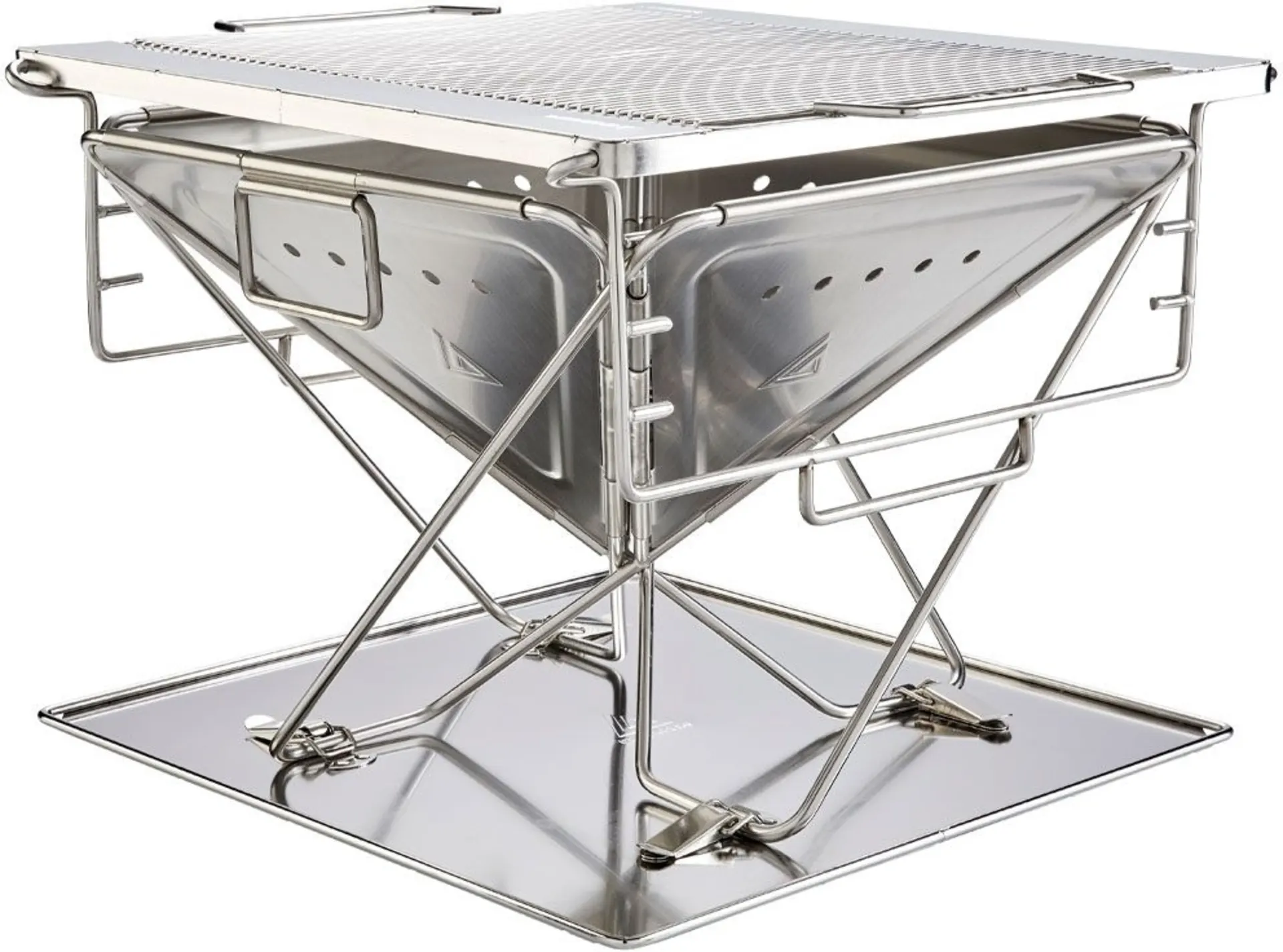 Stabiler Grill mit zahlreichen Features. Öffnungen im oberen Bereich der Feuerschale verhindern die Verwindung des Materials, während Spalten an den Scharnieren eine perfekte Belüftung gewährleisten. Um zu verhindern, dass Kohle auf den Boden fällt und den Grillplatz verschmutzt, ist der Grill mit einer Bodenplatte aus rostfreiem Edelstahl ausgestattet. Für optimale Kontrolle ist der Grillrost in drei Stufen höhenverstellbar. Inkl. robuster Transporttasche. Auch als Feuerschale verwendbar.