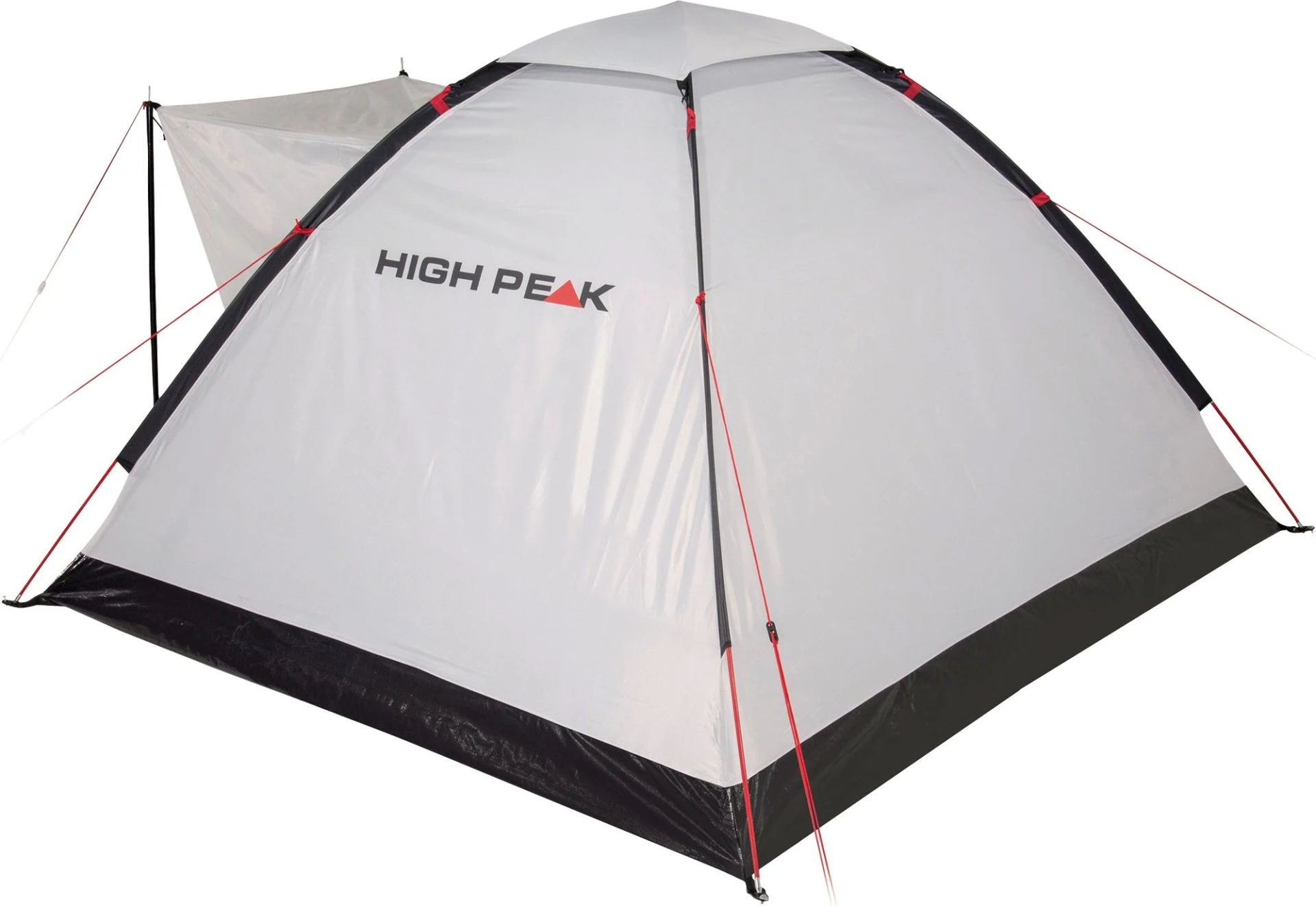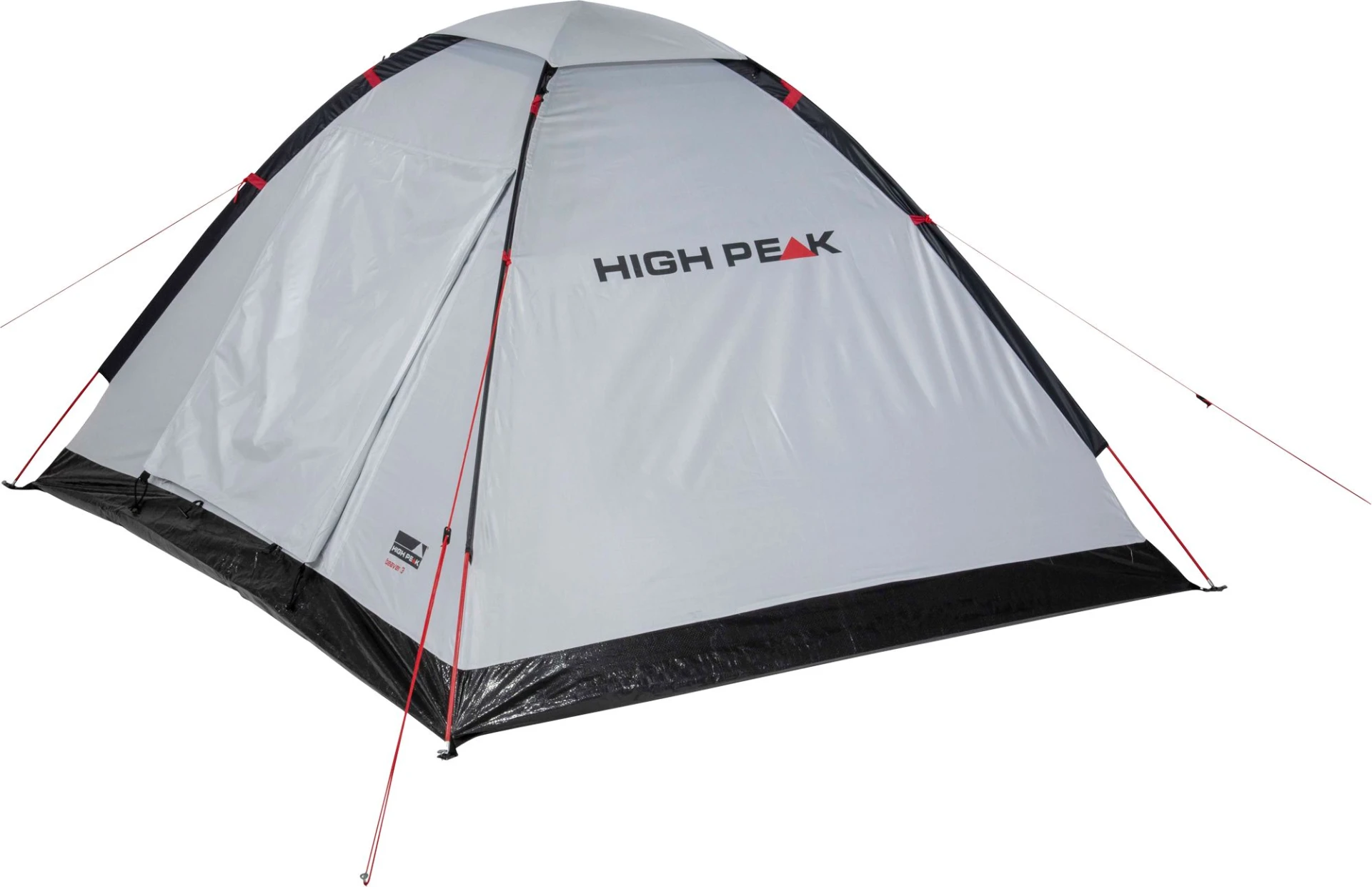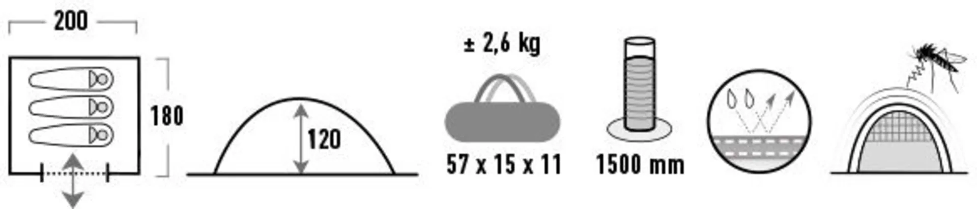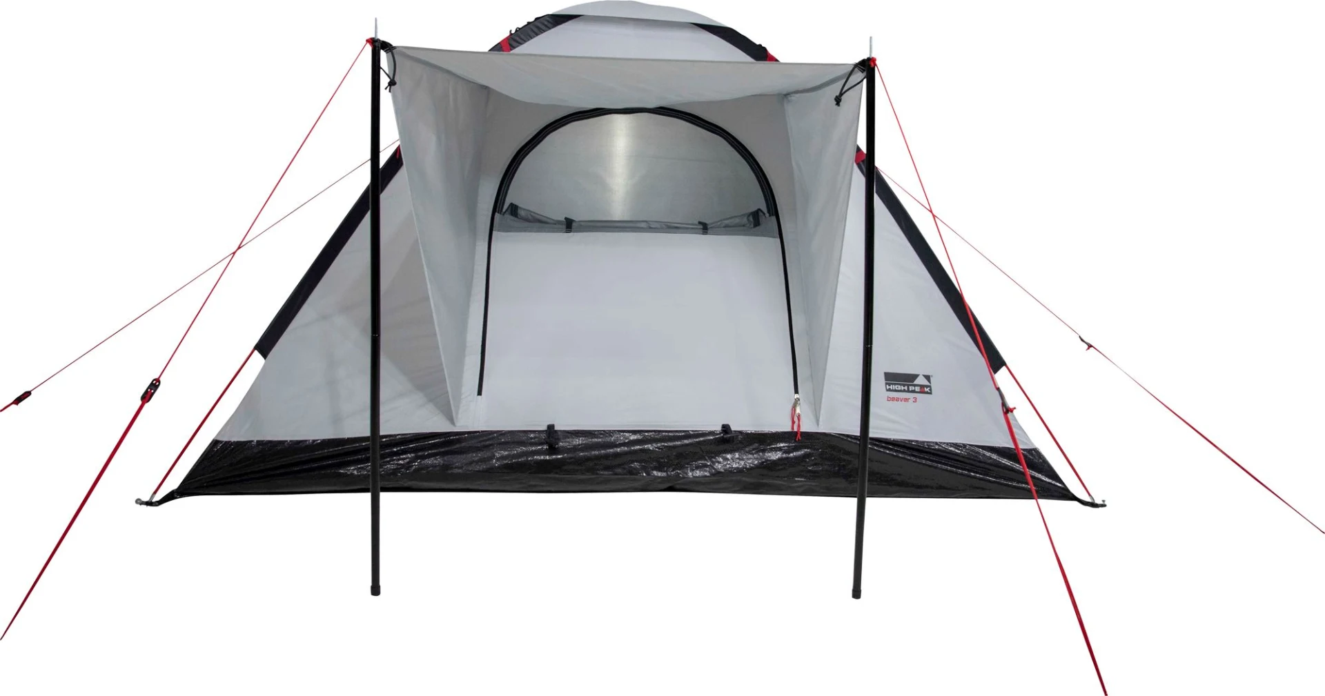 Freistehendes Einfachdach-Kuppelzelt mit wetterfestem Vordach für bis zu 3 Personen. Das Zelt ist mit einer Aluminiumbeschichtung ausgestattet. Die Beschichtung ist wärme reduzierend, stärkt das Zeltgewebe und hat einen UV Sonnenschutzfaktor 60 (UV Standard 801). Der angenähte Zeltboden verhindert das Eindringen von Schmutz und Feuchtigkeit. Das Vordach mit Aufstellstäbe und Windschutzblenden schützt bei schlechtem Wetter. Permanenter Hochentlüfter und Moskitonetz-Eingang belüften das Zelt. Lampenhalter und praktische Innentaschen. Signalrote Gestänge. Die Nähte sind mittels Nahtband wasserdicht versiegelt und gewähren eine höhere Naht-Reißfestigkeit.