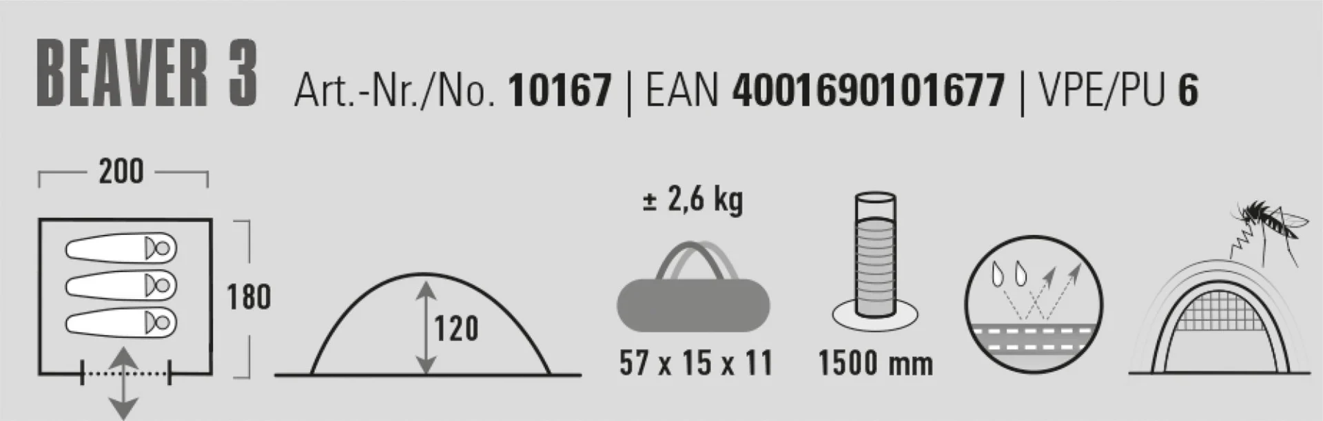 Freistehendes Kuppelzelt mit wetterfestem Vordach für bis zu 3 Personen. Der angenähte Zeltboden verhindert das Eindringen von Schmutz und Feuchtigkeit. Das Vordach mit den Windschutzblenden macht ein Beobachten der Natur und Tierwelt auch bei schlechtem Wetter möglich. Permanente Lüfter und ein Moskitonetzfenster machen die Outdoor Hütte komfortabel. Die Nähte sind mittels Nahtband wasserdicht versiegelt und gewähren eine höhere Naht-Reißfestigkeit. Geeignet für Camping Einsteiger und Naturfreunde.