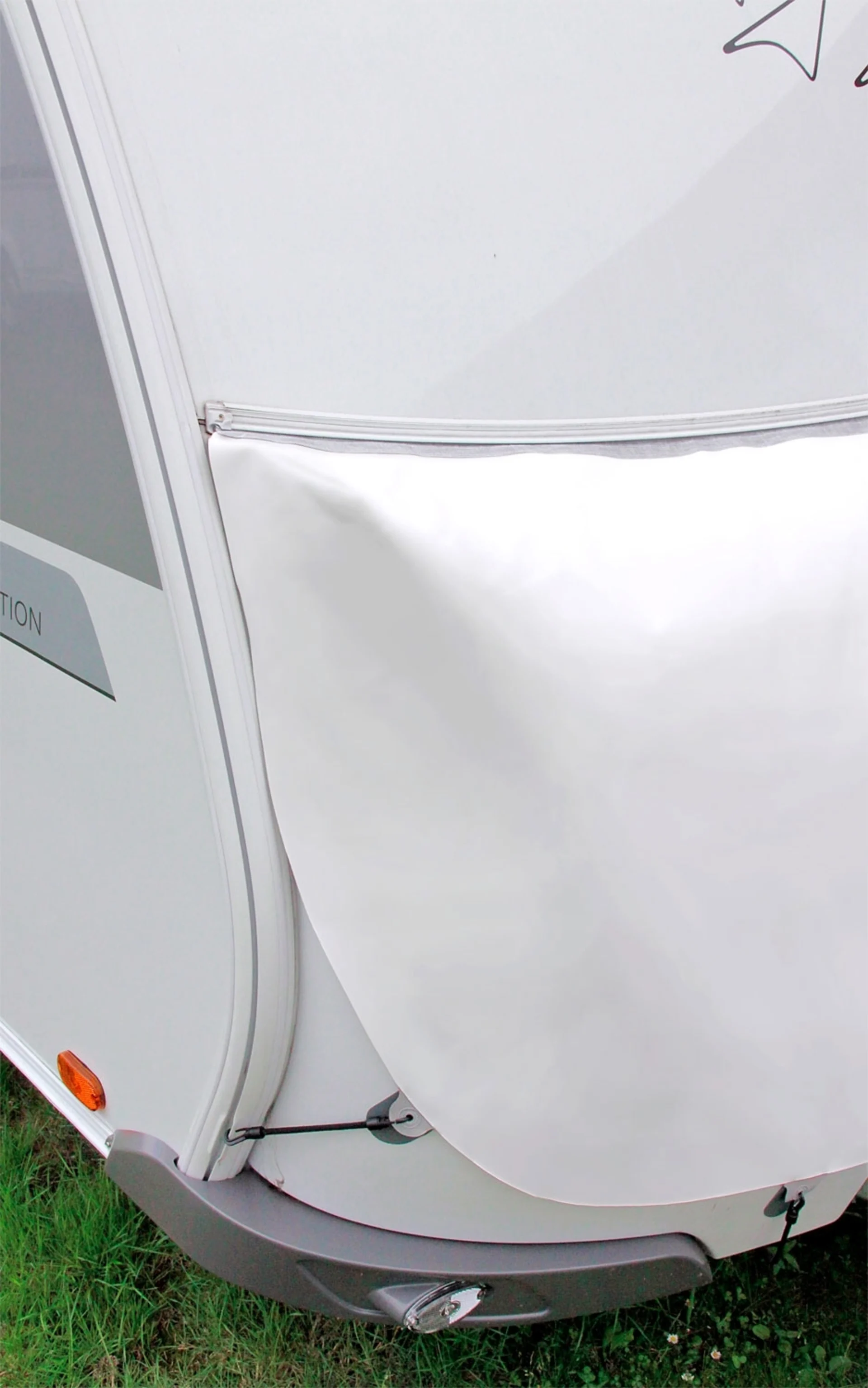 Schützt beim Wintercamping den Flaschenkasten vor Eis und Schnee. Aus winterfestem Planenmaterial, ca. 500 g/qm, weiß, mit Schutzlackierung, am oberen Rand ist ein Keder angeschweißt. Am unteren Rand befinden sich Ösen zum Abspannen.