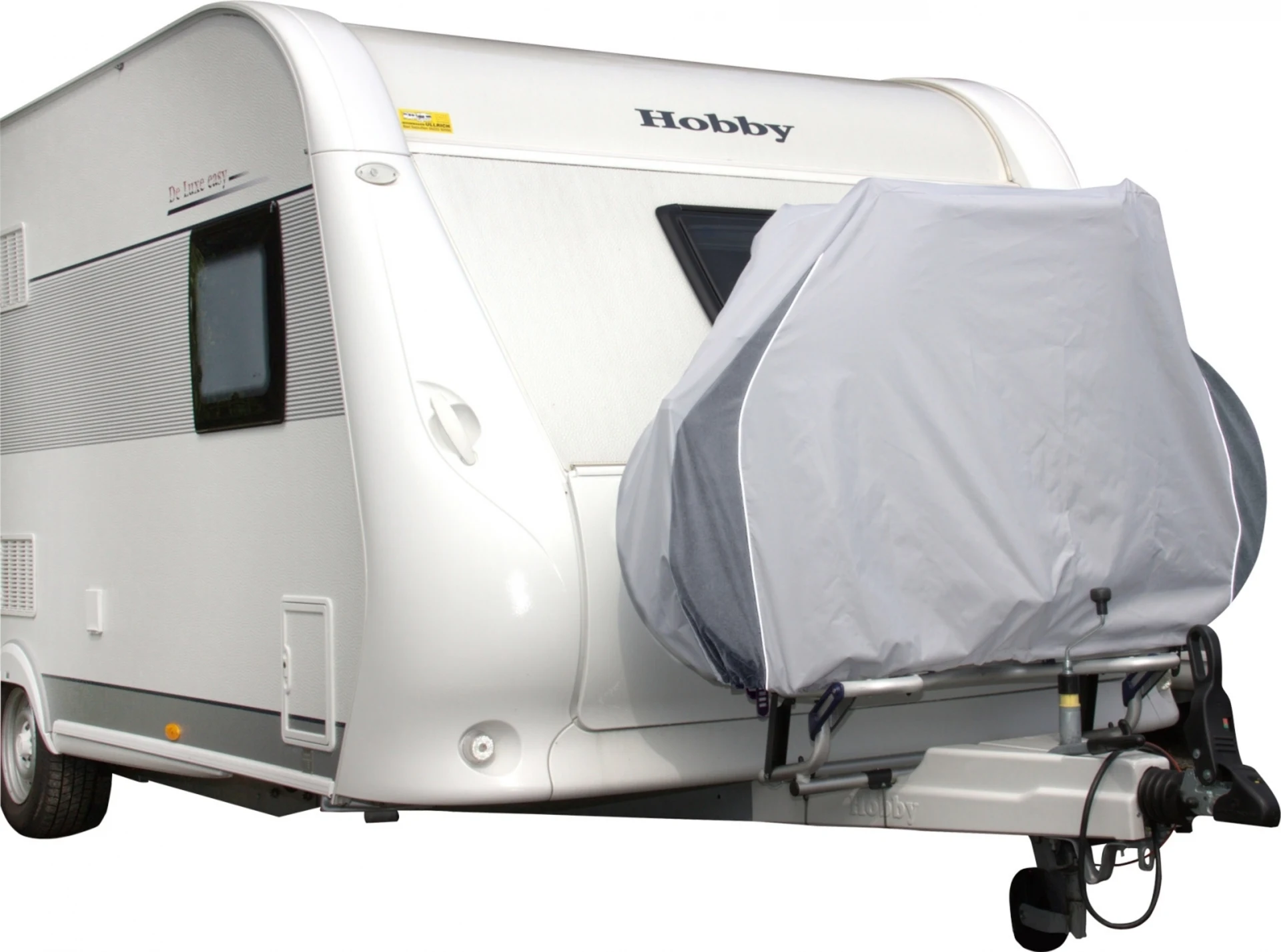 Die Fahrradhülle ist in erster Linie konzipiert für auf Deichseln montierte Fahrradträger, aber durch die Kastenform ist dies Hülle universell einsetzbar. Entlang der Unterkante ist ein Hohlsaum vorhanden, in dem die beiliegenden Gummispanner einzogen werden müssen. Für die Anwendung am Reisemobil ist eine Glasklartasche für die Warntafel eingearbeitet (Warntafel nicht im Lieferumfang enthalten).