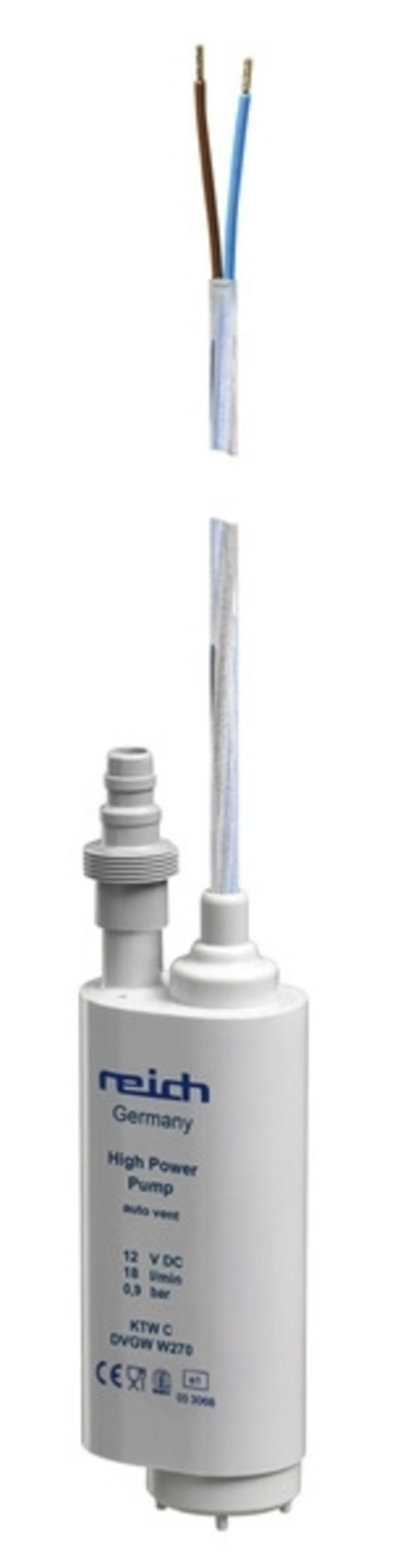 Tauchpumpen mit Überwurfmutter für Schlauch mit Innen-ø 10 mm und Außen-ø 16 mm. Leistungsaufnahme: 30-40 W.
