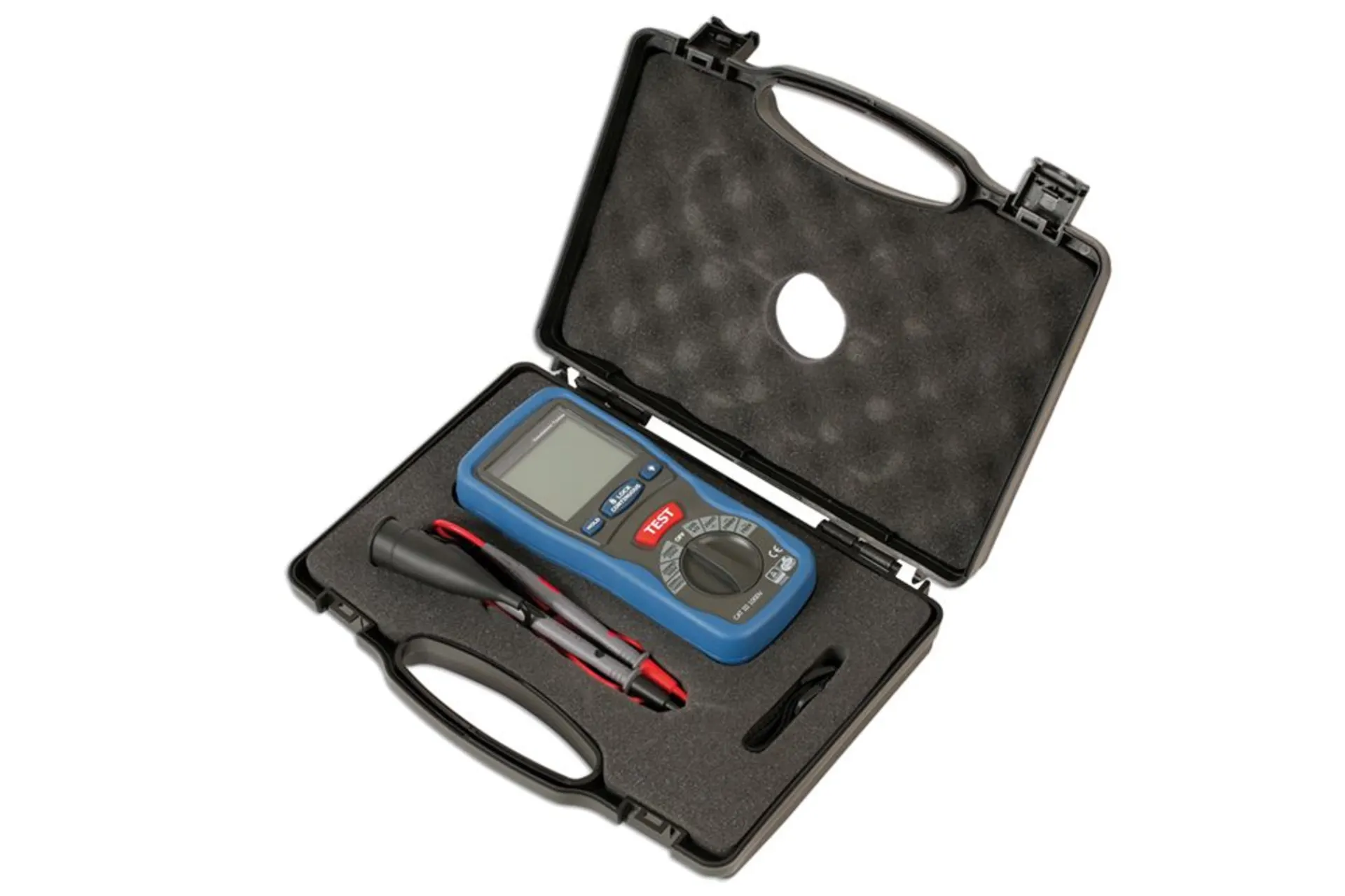Dient zur Prüfung der Isolierung der Verkabelung in elektrischen Anlagen, Geräten und Maschinen und ist geeignet für den Einsatz an Hybrid- und Elektrofahrzeugen. Isolationsmessgeräte für den Einsatz in Kfz-Werkstätten müssen wegen der Umgebung, in der sie eingesetzt werden, robust sein und genaue Diagnoseinformationen liefern. In den Antriebsstrang von Hybrid- und Elektrofahrzeugen kann Feuchtigkeit eindringen und Russ kann sich ablagern. In diesen Einsatzbereichen sind die Daten der Isolationsprüfung besonders nützlich. Das Messgerät kann 1000V liefern - ein Spannungsniveau, das für die Diagnose eines Spannungslecks in Hochspannungskabeln oder in Hybrid-Motor Generatoren erforderlich ist. Ein unsachgemässer Gebrauch dieses Instruments kann zu Schäden, Stromschlägen, Verletzungen oder zum Tod führen. Es sollte nur von entsprechend qualifizierten und erfahrenen Benutzern verwendet werden. Vor der Bedienung des Instruments diese Anleitung (und im Fall von Hybrid- oder Elektrofahrzeugen die gesamte technische Dokumentation des Herstellers) lesen und verstehen.