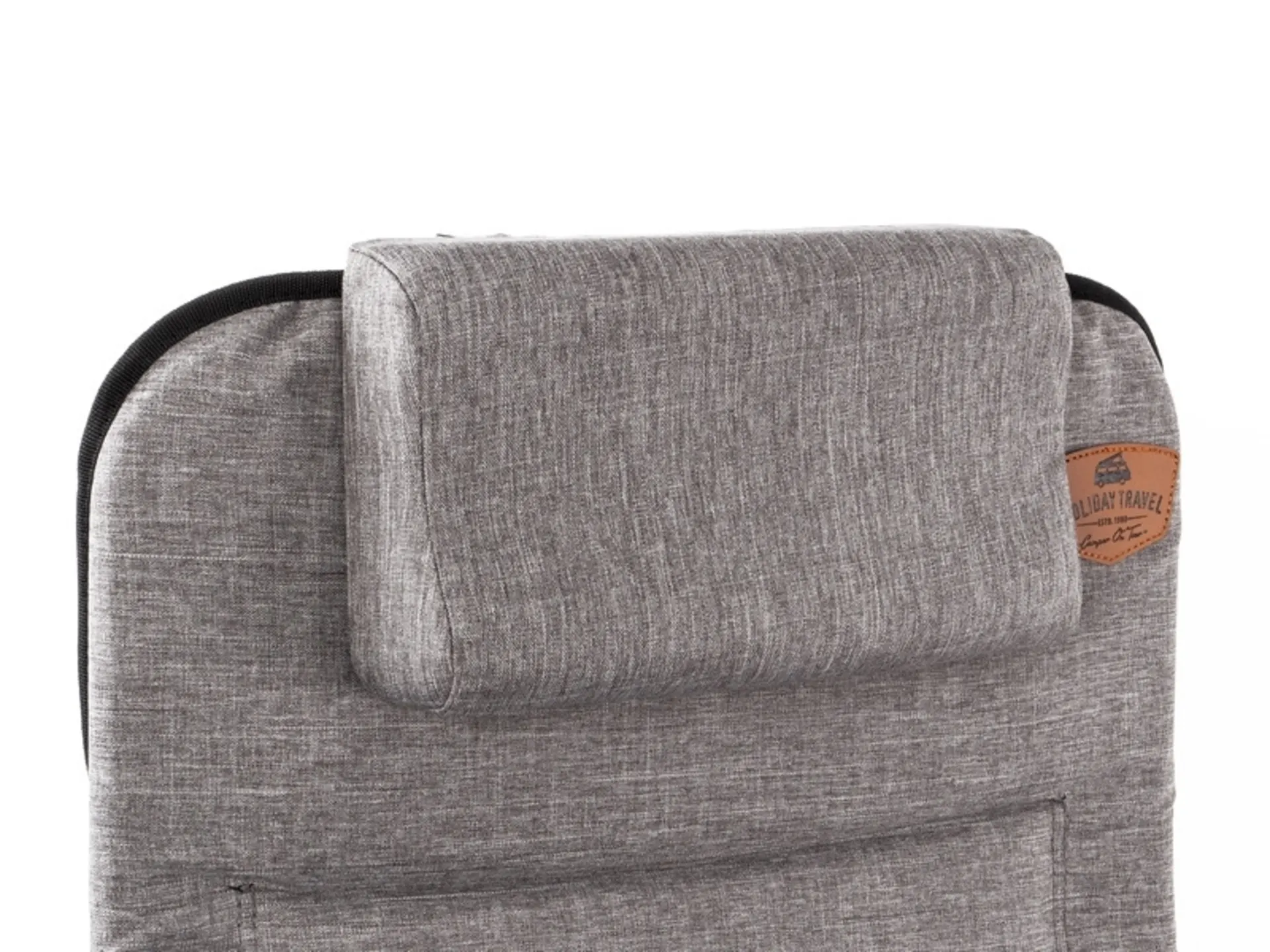 Der Campingsessel Malaga Plus mit der bequemen Polsterung in Rückenlehne und Sitzfläche fügt sich perfekt in die exklusive Holiday Travel - Serie ein. Durch die individuell ausziehbare Kopfstütze und die 7-fach verstellbare Rückenlehne findet jeder die richtige Position zum entspannen.