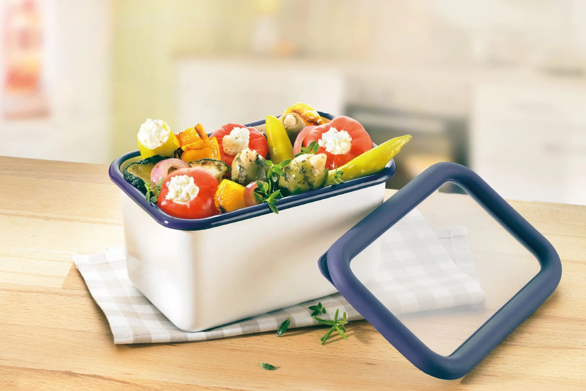 Universell einsetzbare Frischhaltedosen: ideal zum Kochen, Backen, Servieren, Aufbewahren, Transportieren, Einfrieren, Erhitzen und mehr – im klassischen Design. Die Frischhaltedose aus Emaille von HoneyWare eignet sich nicht nur als Vorrats- und Aufbewahrungsdose, sondern kann auch als Backofenform für Auflauf, Lasagne, Gratin und mehr verwendet werden. Zudem ist sie auch für die Aufbewahrung in Gefrierfach oder zum Transportieren von Lebensmitteln geeignet. Dank des passgenauen Deckels lässt sich der Behälter sicher verschließen. Die mühelose Reinigung in der Spülmaschine verspricht einen hohen Komfort.