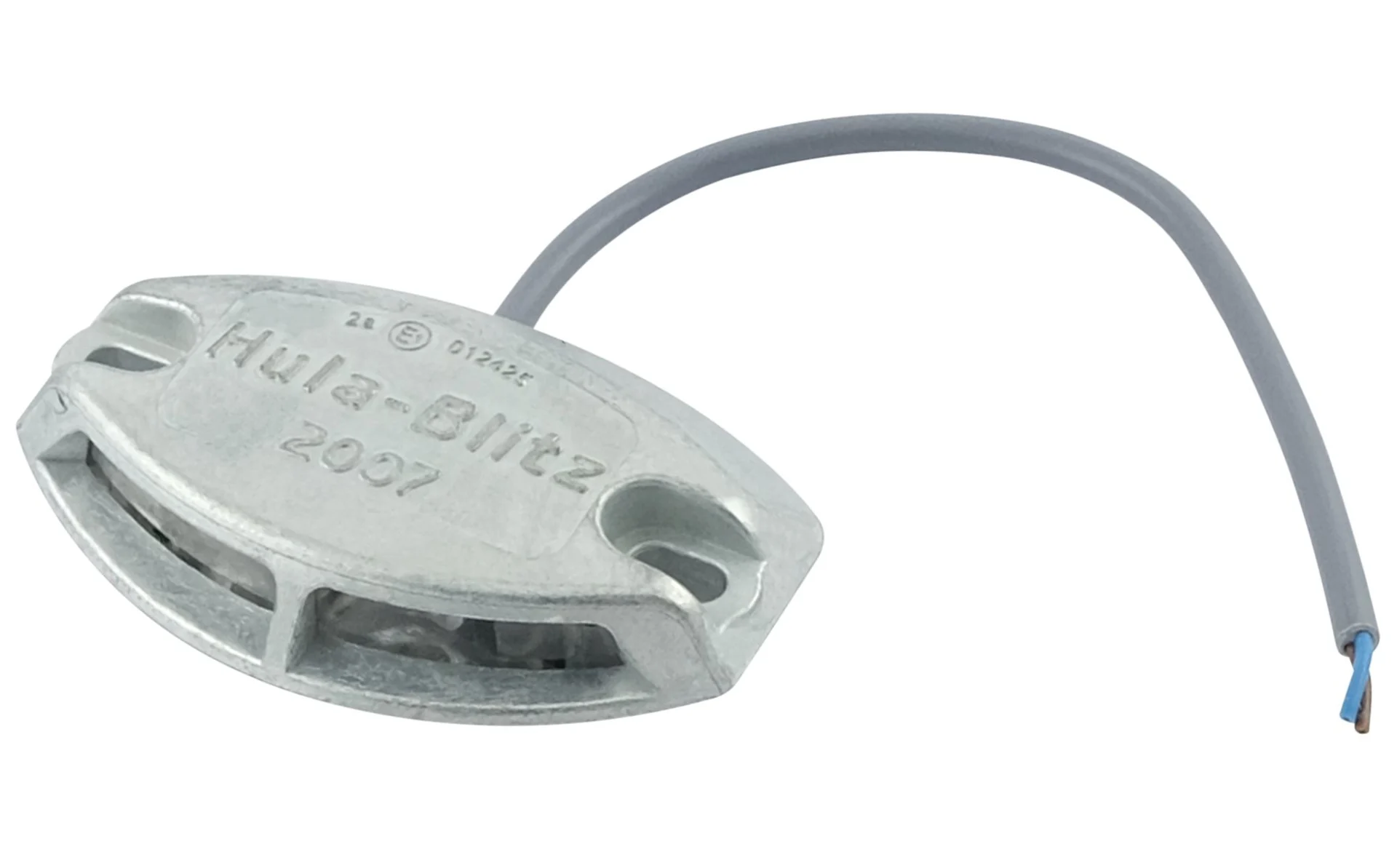 Der Hula-Blitz 2007 ist kompatibel zu allen am Markt befindlichen Hubladebühnen-Leuchten durch zwei Langlöcher.