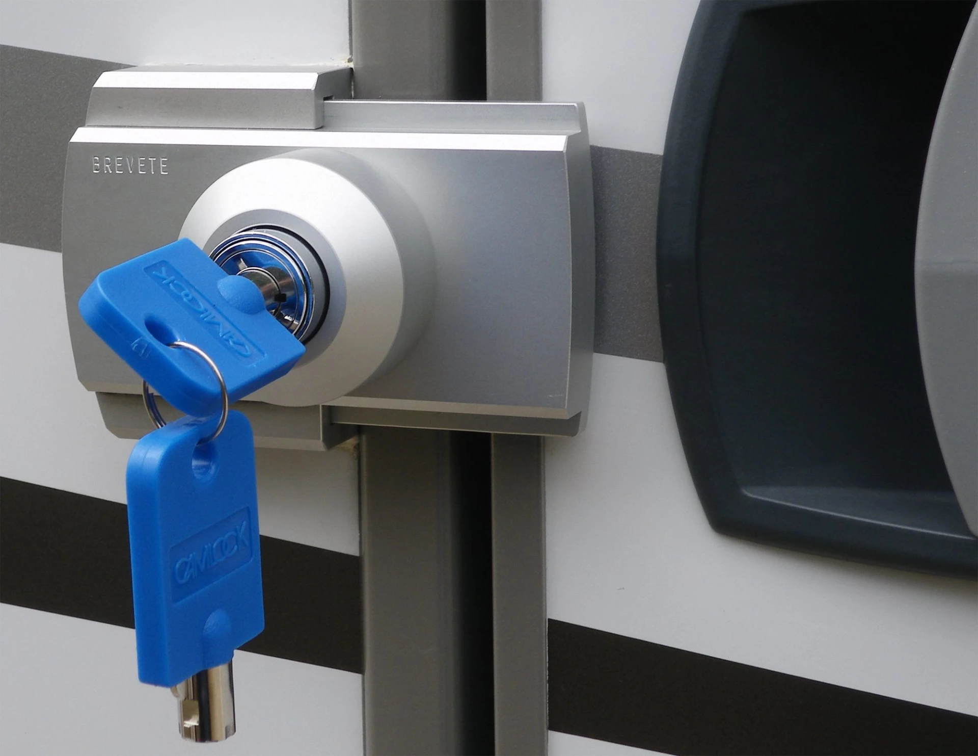 - Achteckiger 7-Stifte-Zylinder für 500000 Kombinationen, signiert von der renommierten englischen Marke Camlock.