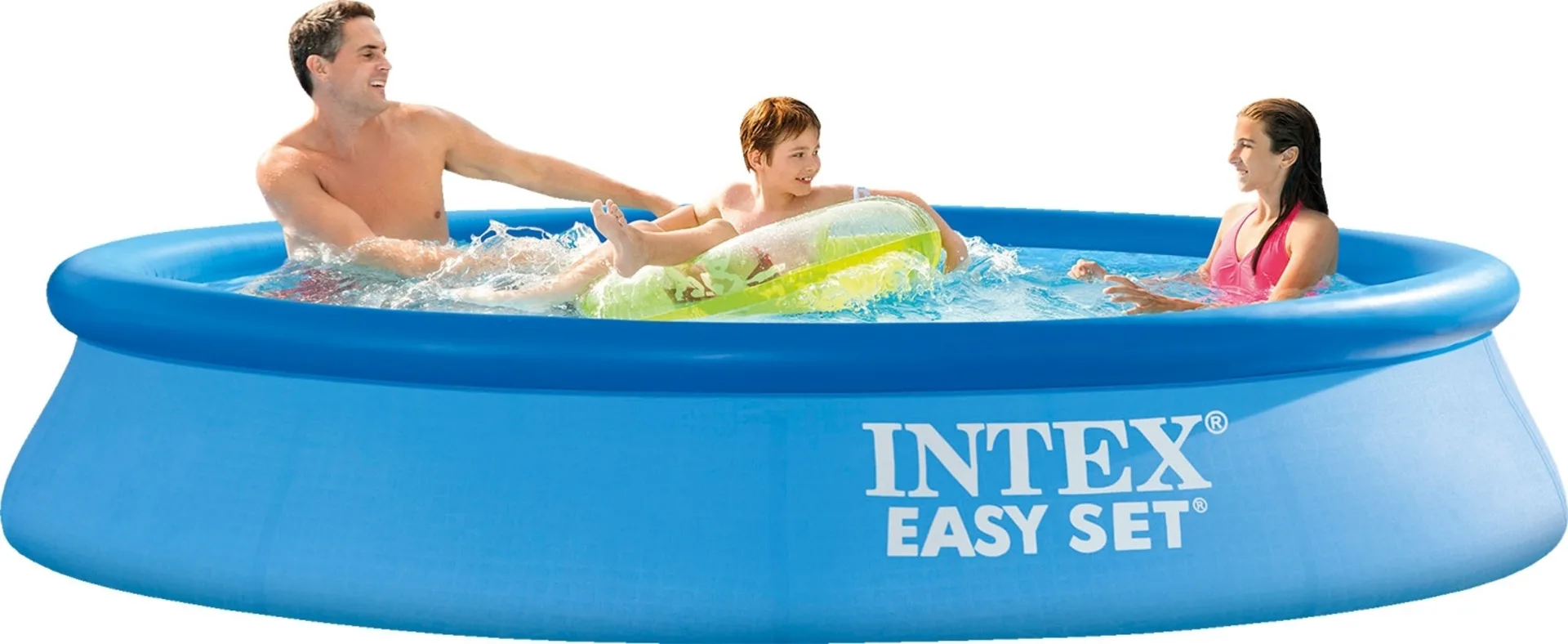 Der Easy Set Pool von Intex ist der optimale Pool für Einsteiger. Durch das extra große Luftventil mit Rückschlagschutz ist der Luftring schnell aufgeblasen und sorgt zusammen mit dem festen Material des Pools für hohe Stabilität und Sicherheit. Die patente Formgebung ermöglicht maximale Stabilität des Pools auch ohne zusätzliche Unterstützung durch störende Metallverstrebungen oder Stützen. Die Poolfolie besteht aus 3-Lagen Super-Tough, einem Polyester-Trägergewebe mit beidseitig, dick auflaminierten Polychlorid.