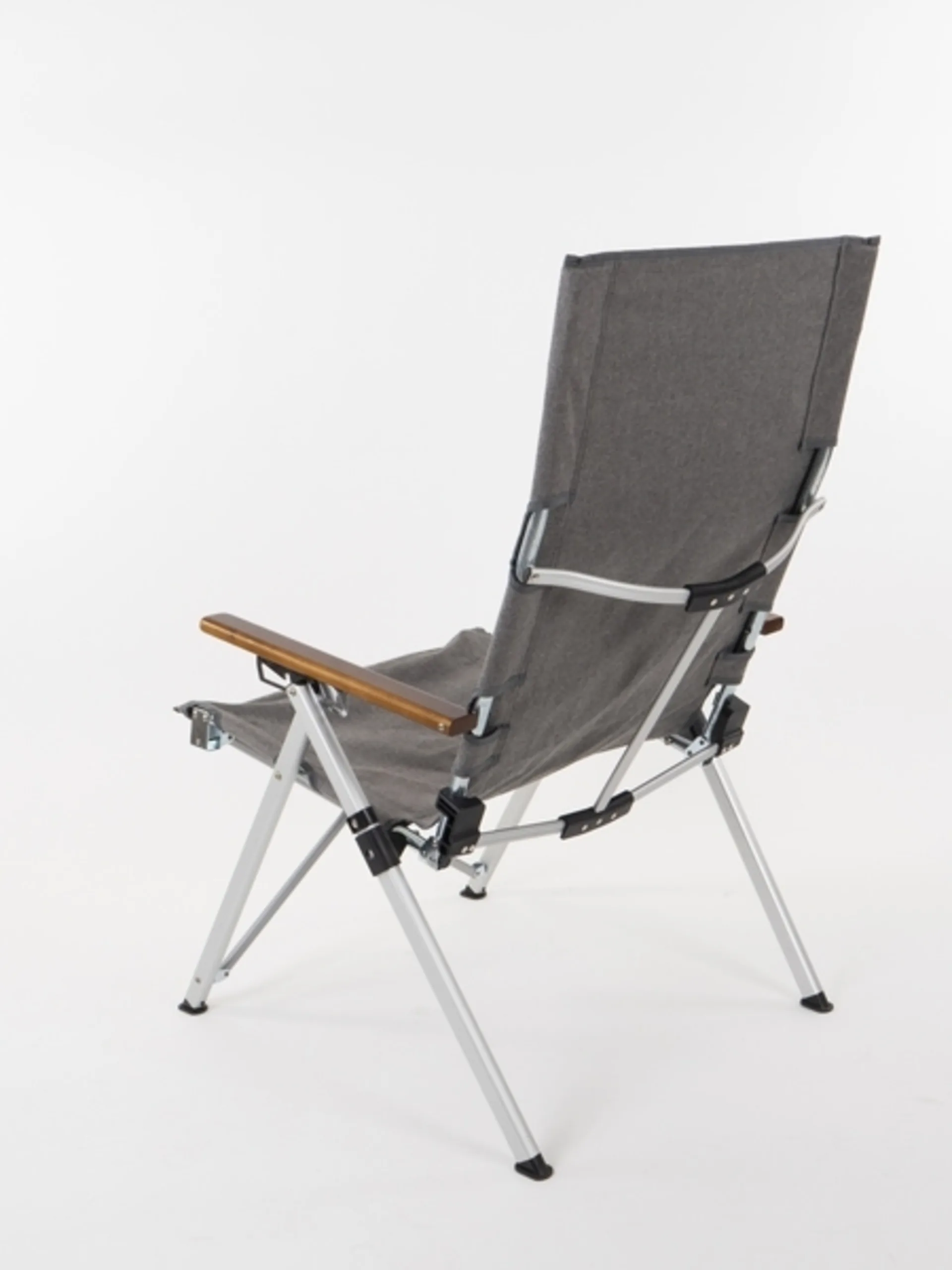 Dank sehr kleinem Packmaß (89 x 22 x 18 cm) der ideale Campingstuhl für kleine Camper. Der grau-melierte Stoff mit Leder-Etikett und braunen Armlehnen aus Holz verleihen dem Faltstuhl aus der HOLIDAY TRAVEL - Serie ein exclusives Design. Die 4-fach verstellbare Rückenlehne sorgt für angenehmen Sitzkomfort.