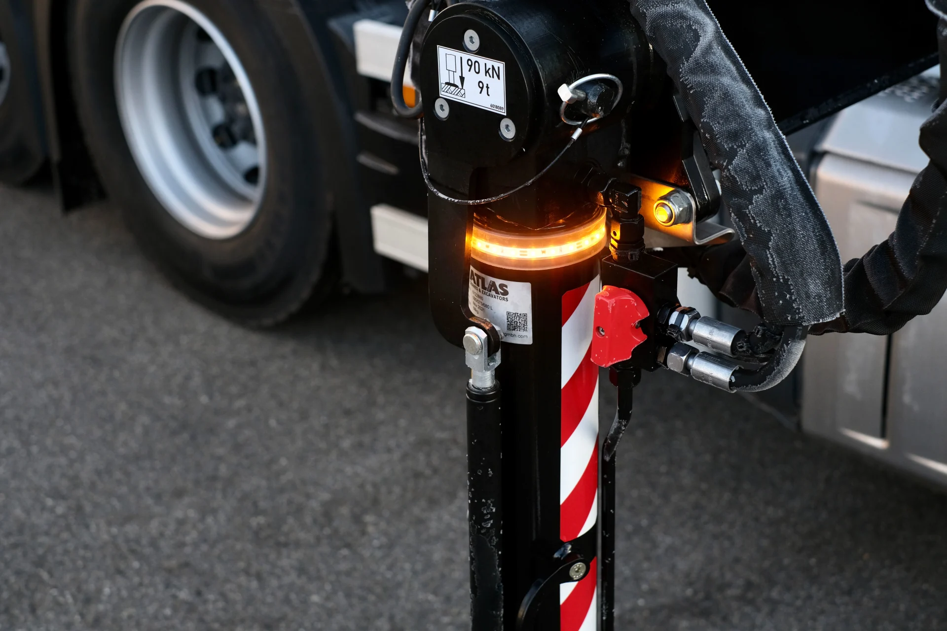 - Blinkender LED-Warnstreifen für Kranstützen