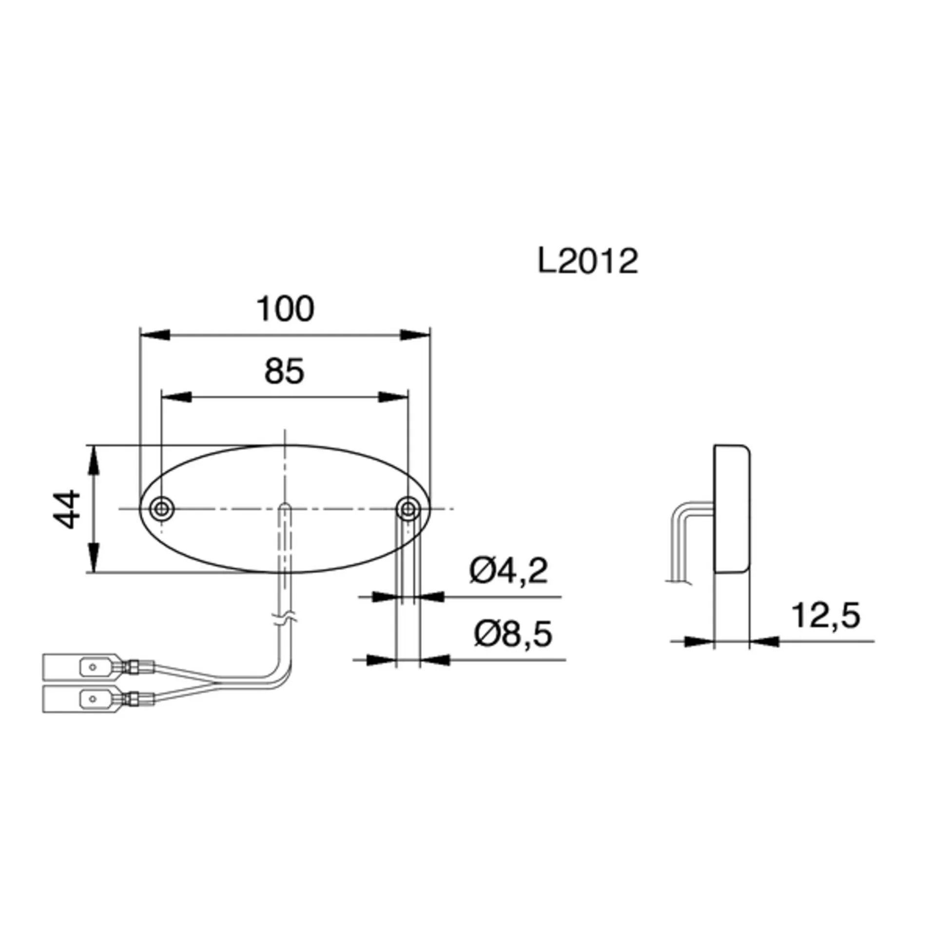 Integrierter Rückstrahler, IP67 hinten, 12V, 1W, klar, mit Kabel 200 mm.
