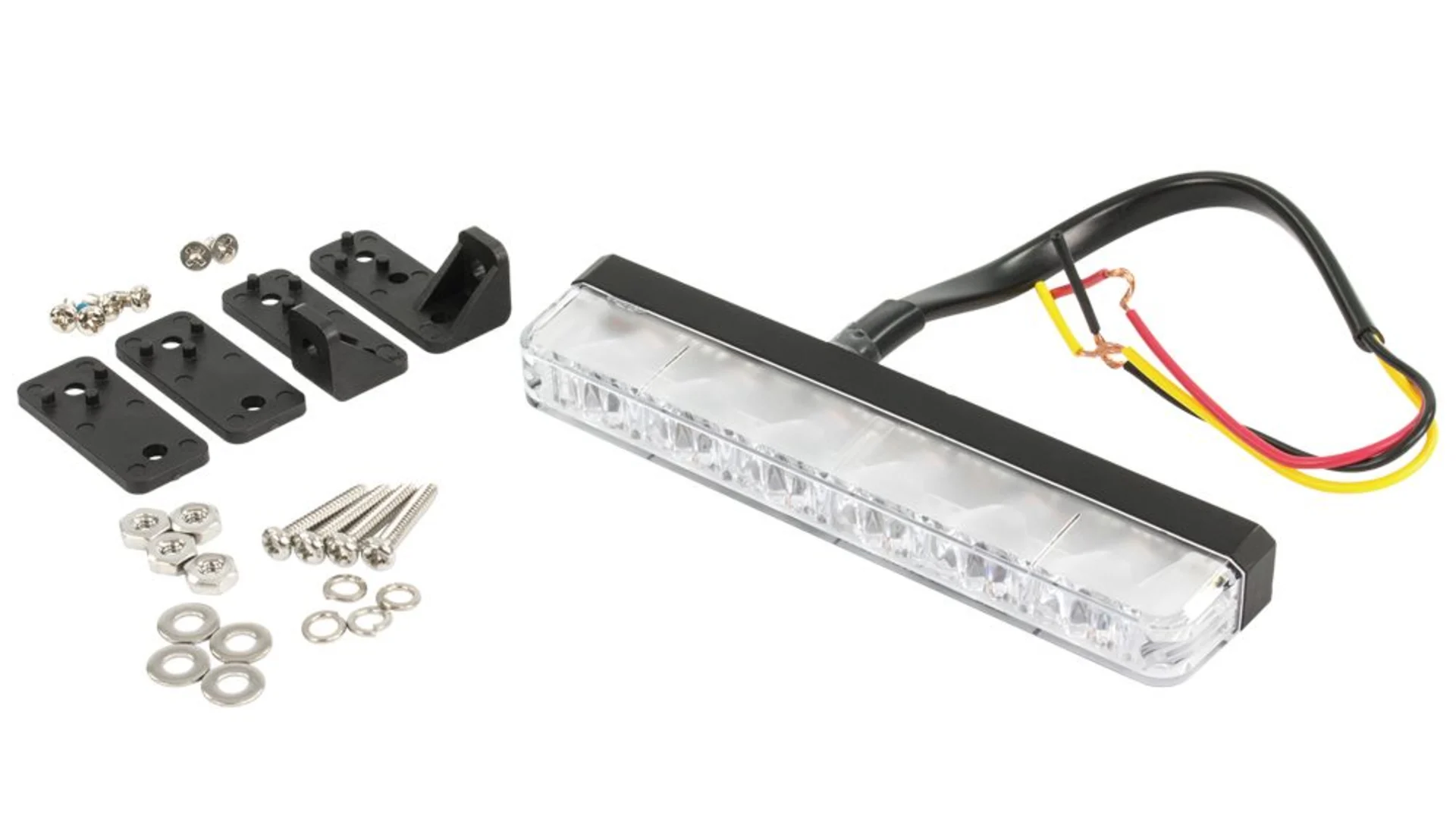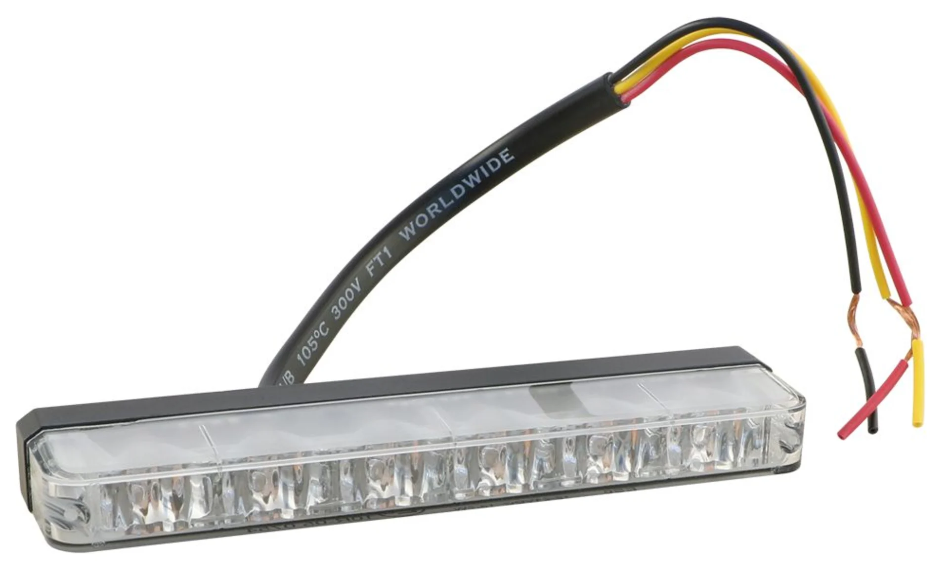- gelb = 1) Blitzfrequenz programmierbar durch Kontakt zu rot, 2) zum Synchronisieren mit anderen gleichen Leuchten gelbe Kabel verbinden