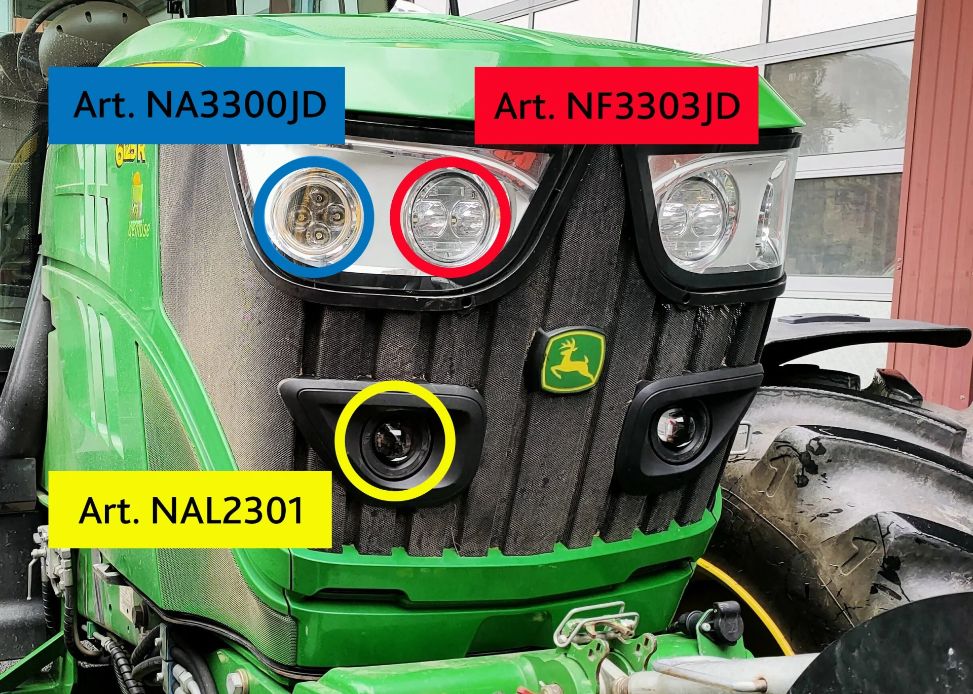 Komplettes Umbauset um alle John Deere Traktoren der Serie 6R/M - Serie in der Motorhaube auf LED-Beleuchtung aufzurüsten.