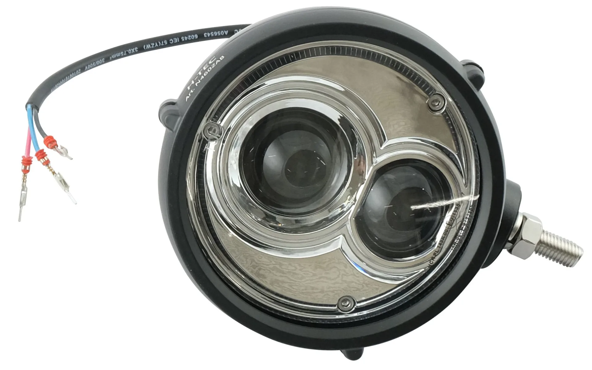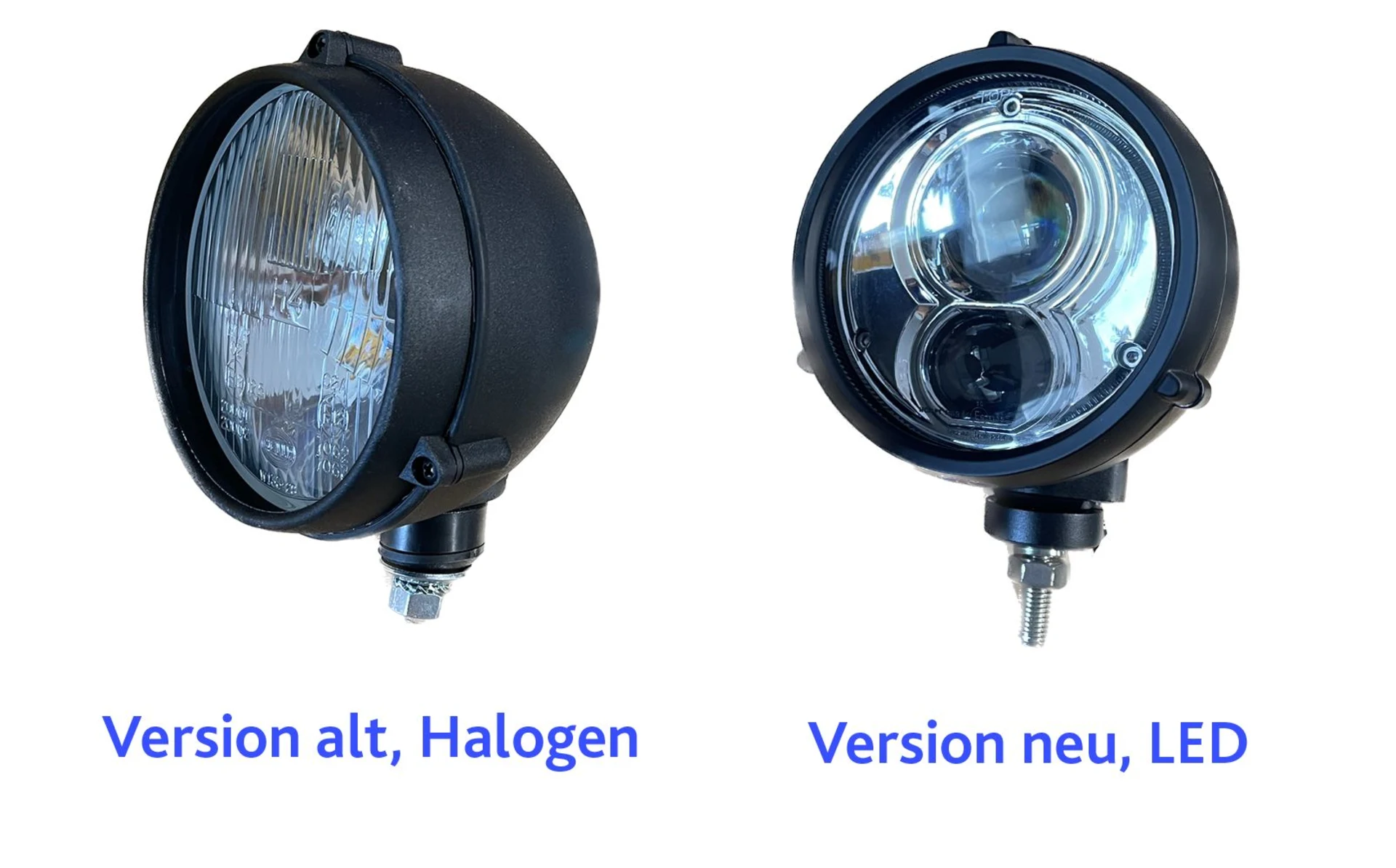 Der Bi-LED Aufbauscheinwerfer von H-TEC mit Strassenzulassung kann als Nachrüstung der bekannten Halogenscheinwerfer aufgebaut werden.