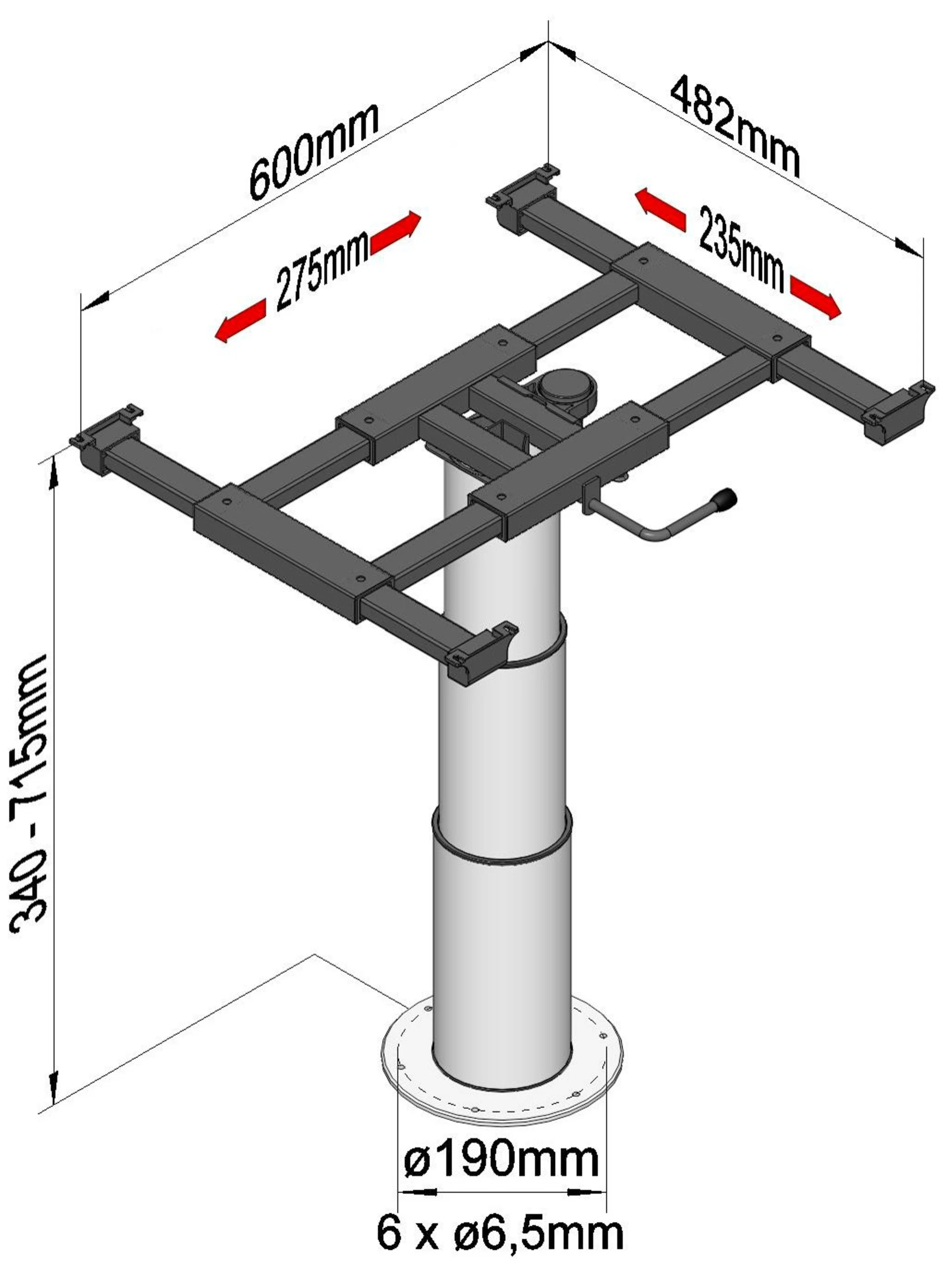 | Höhenverstellung | von 340 - 715 mm (Unterkante Tischplatte) |