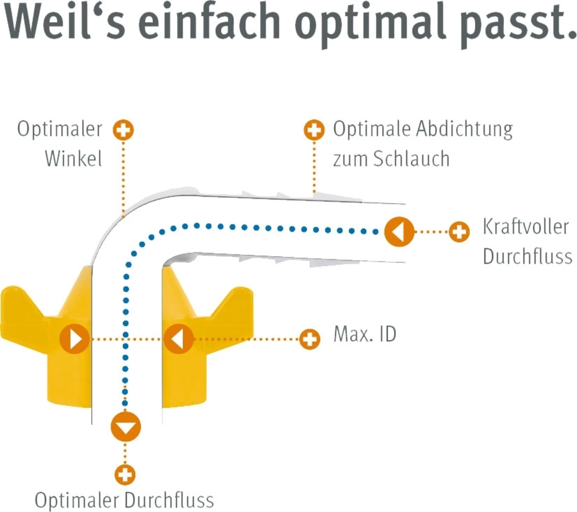 - Optimal: optimierter Wasserfluss durch optimal aufeinander abgestimmte Teile