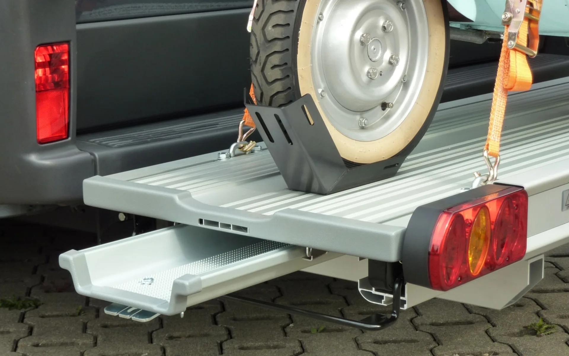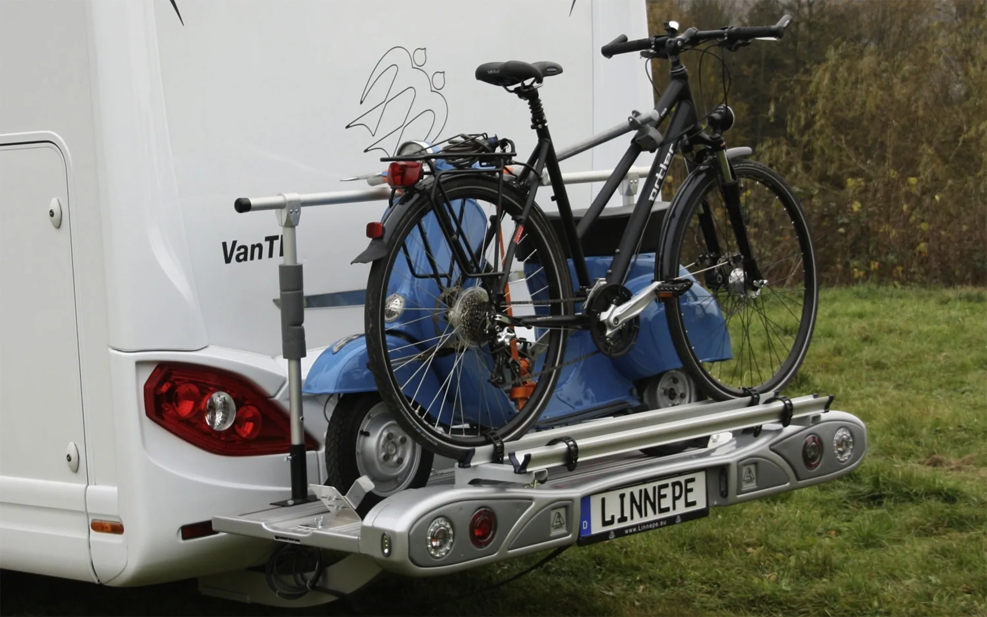 Mit der Erweiterung Fahrradhalter Plus lässt sich der Lastenträger ganz einfach für den Transport von bis zu zwei Fahrrädern zusätzlich zu einem Motorrad oder Roller aufrüsten.