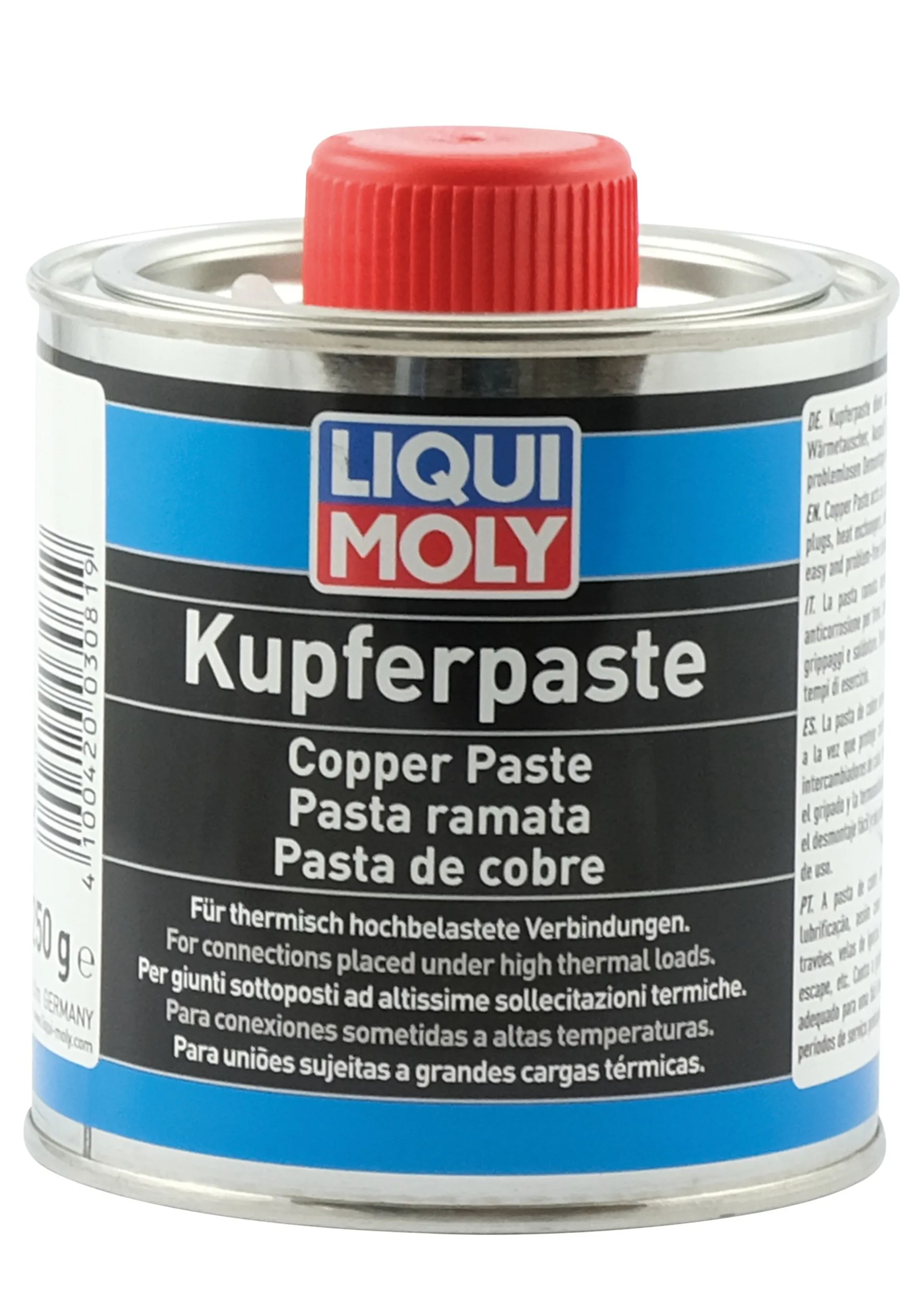 Kupfer-Paste wird für höchste Temperaturen eingesetzt bei Schraubverbindungen und Trennflächen, die hohen Temperaturen, hohen Drücken und korrosiven Einflüssen ausgesetzt sind. Temperatureinsatzbereich: –35 °C bis +1.100 °C.