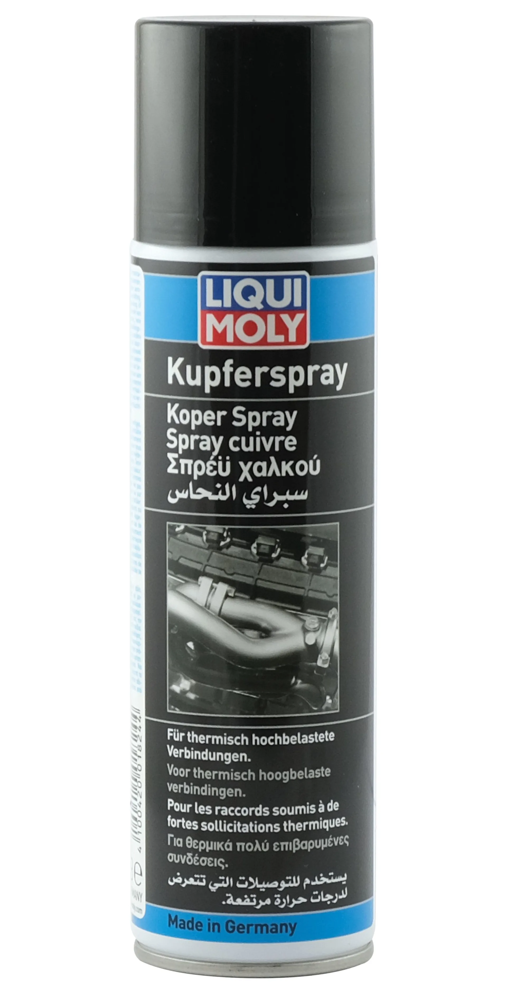 Trenn- und Schmierstoff aus feinsten Kupferpartikeln für thermisch hochbelastete Maschinenelemente. Im Fahrzeugbau speziell bei Schraubverbindungen an Auspuffkrümmern, Schalldämpfern, Fahrwerkteilen - Ermöglicht eine problemlose Demontage nach langer Betriebszeit. Kupfer-Spray wird für höchste Temperaturen eingesetzt bei Schraubverbindungen und Trennflächen, die hohen Temperaturen, hohen Drücken und korrosiven Einflüssen ausgesetzt sind. Temperatureinsatzbereich: – 30°C bis 1’100 °C.