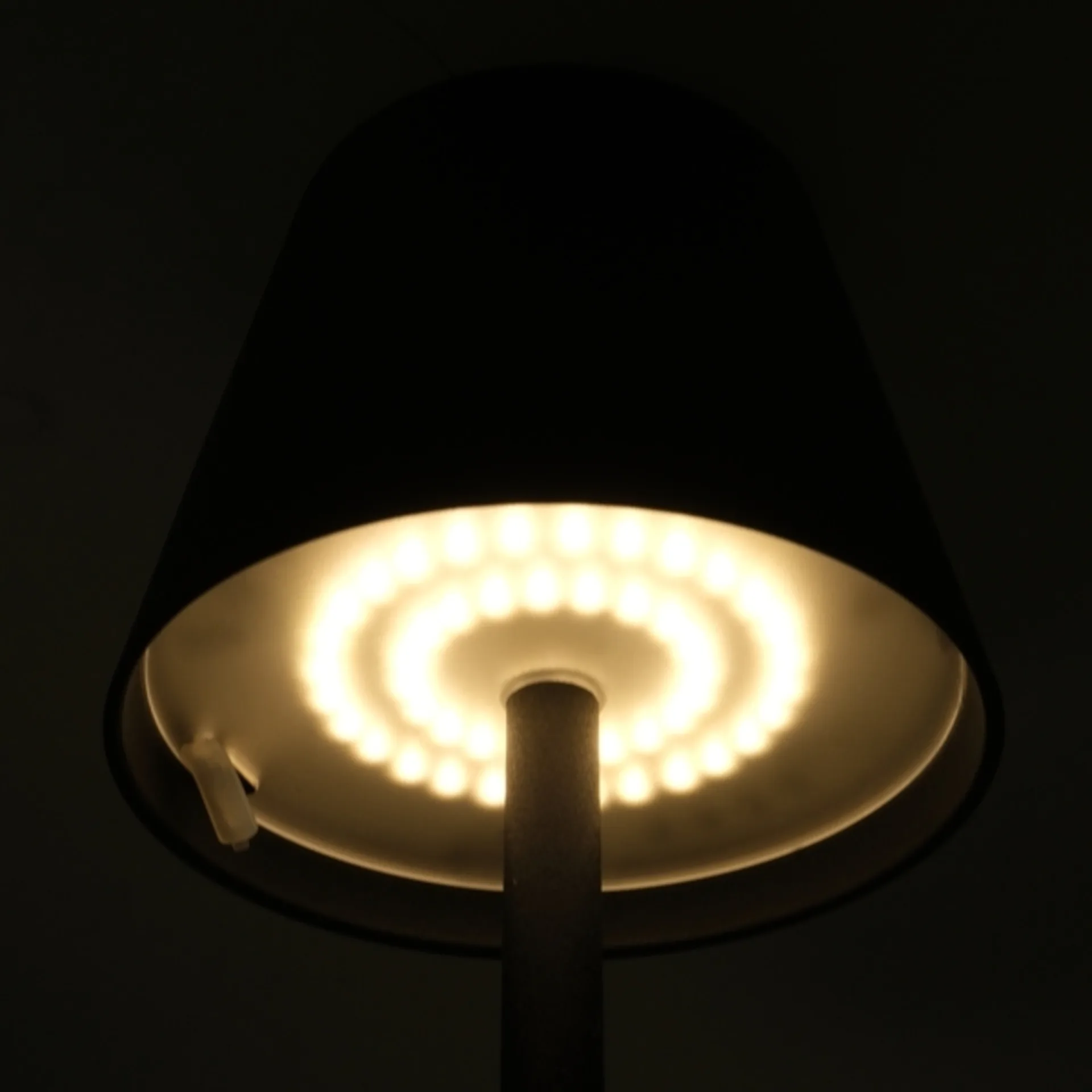 Ausgestattet mit einer Lichtstärkeregelung und einem eleganten Metallschirm. IP54, schwarz, Touch-Sensor 3600 mA angenehmes Licht dank warmweißer LED Beleuchtung. 48 Led´s, 3 Watt, 200 Lumen, Betriebsdauer 16-24h.