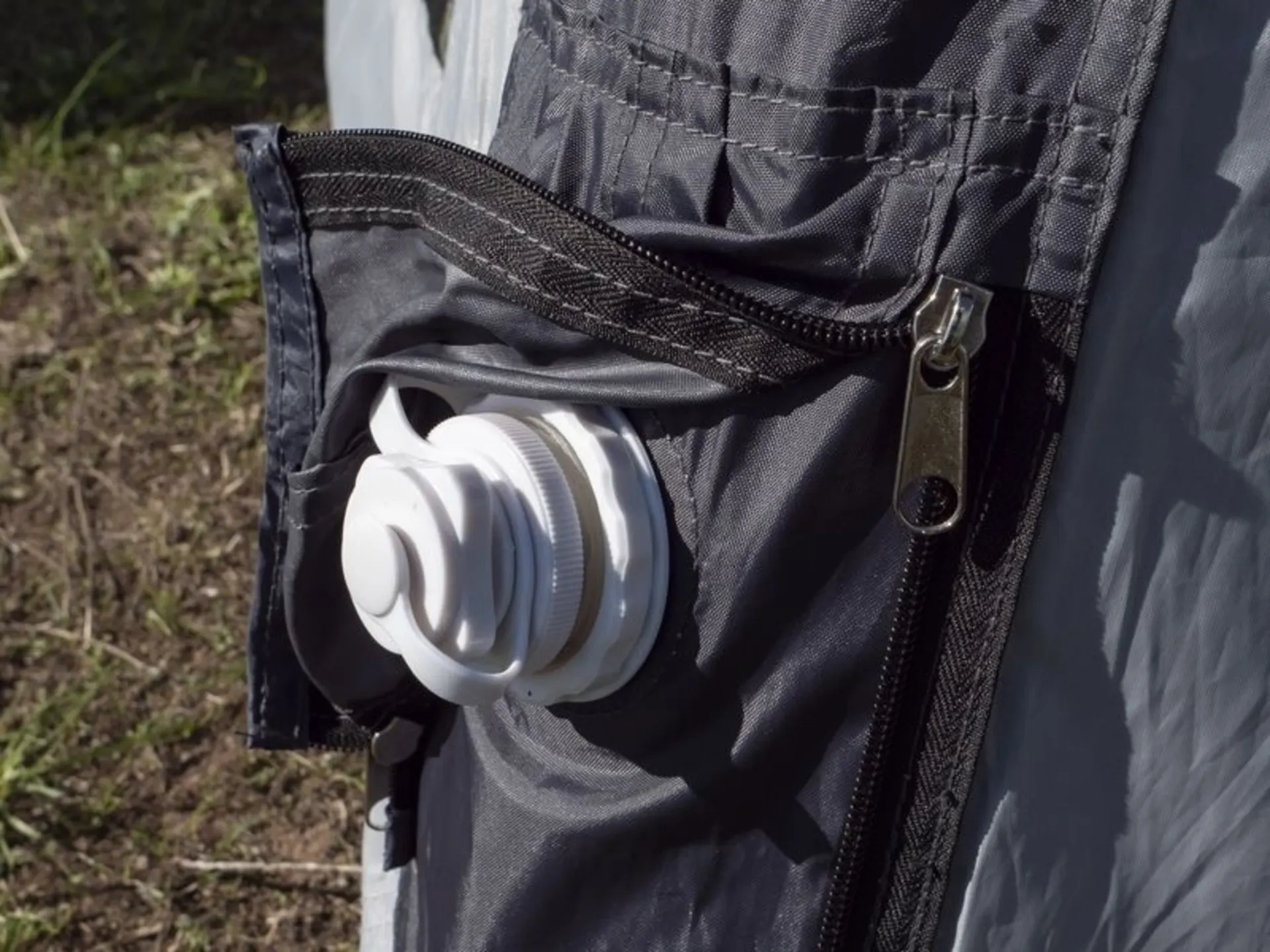 - Aufrollbare Tür in Seitenwand mit Reißverschluss