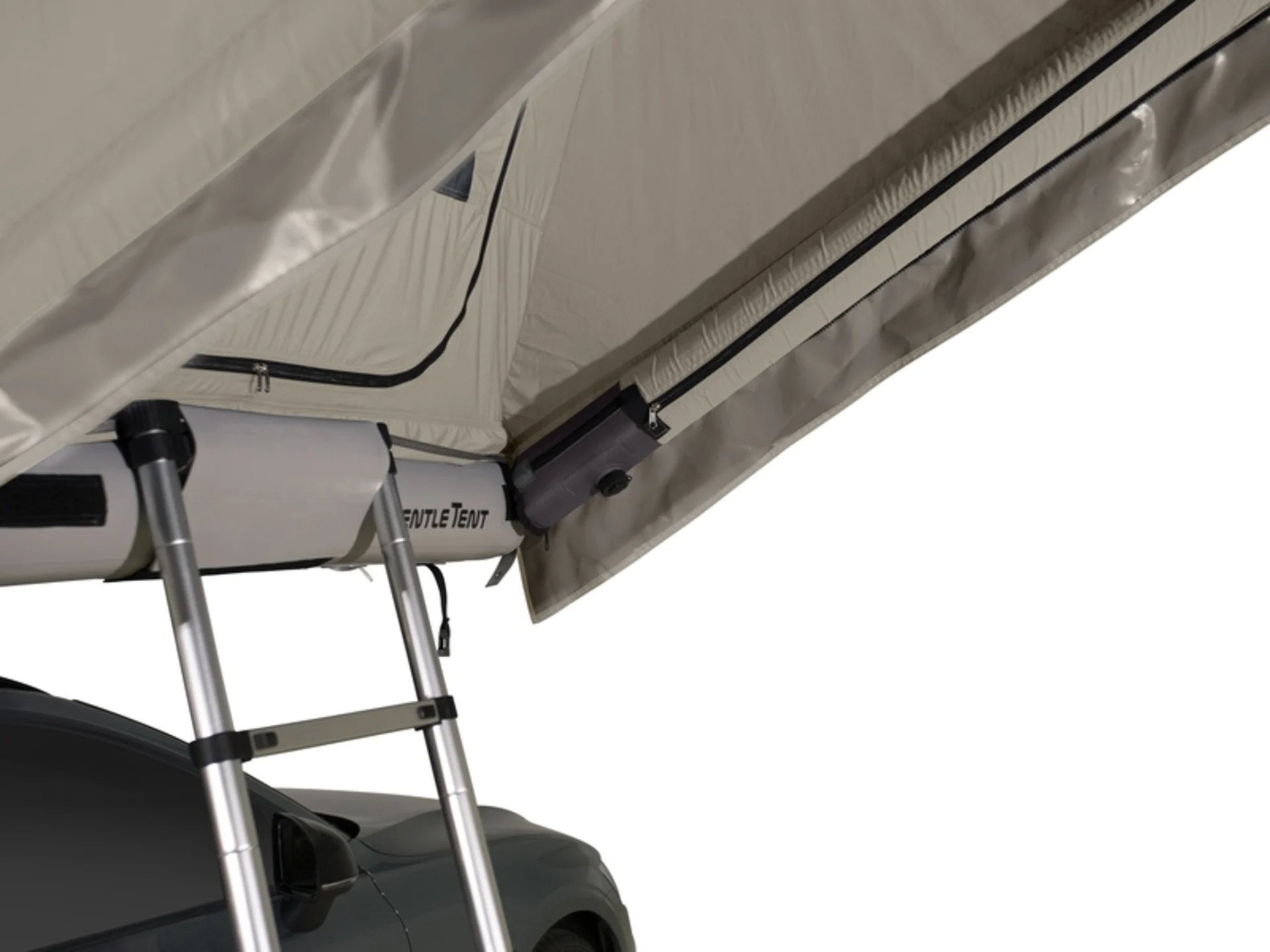 Das GT Roof hat auf einer Liegefläche von 140 x 220 cm Platz für bis zu 3 Personen. Mit einem Gewicht von nur 31 kg (ohne Leiter & Zubehör) und einem Packmaß von 142 x 112 x 15 cm passt es auf 99 % aller Fahrzeuge. Die Aufbauzeit mit Elektropumpe beträgt etwa 8 Minuten.
