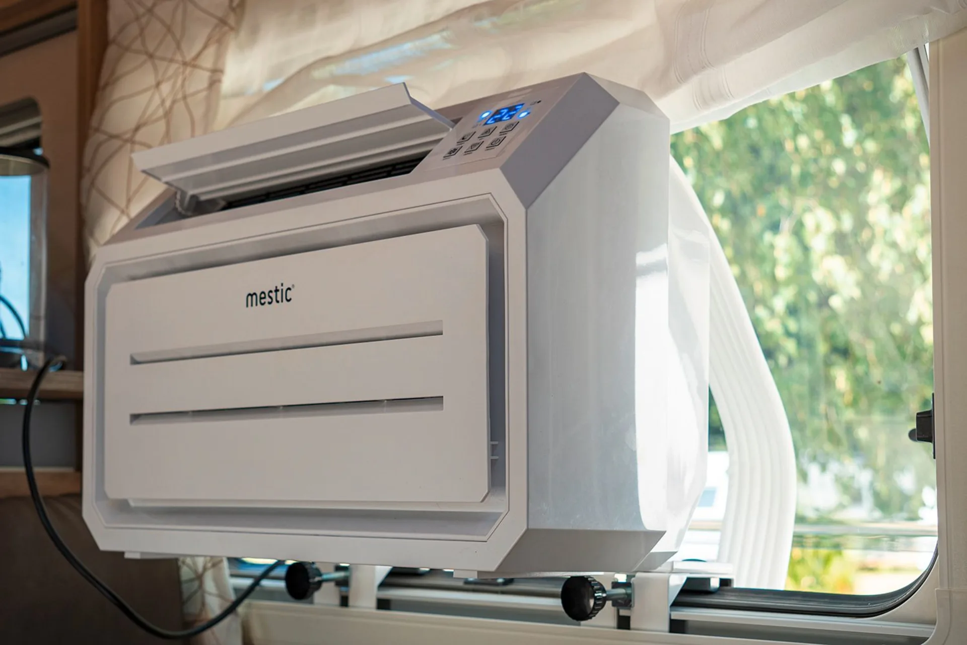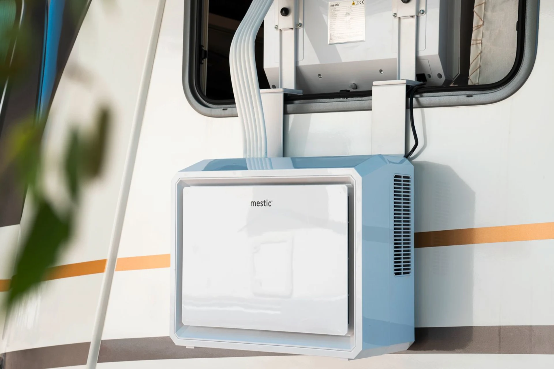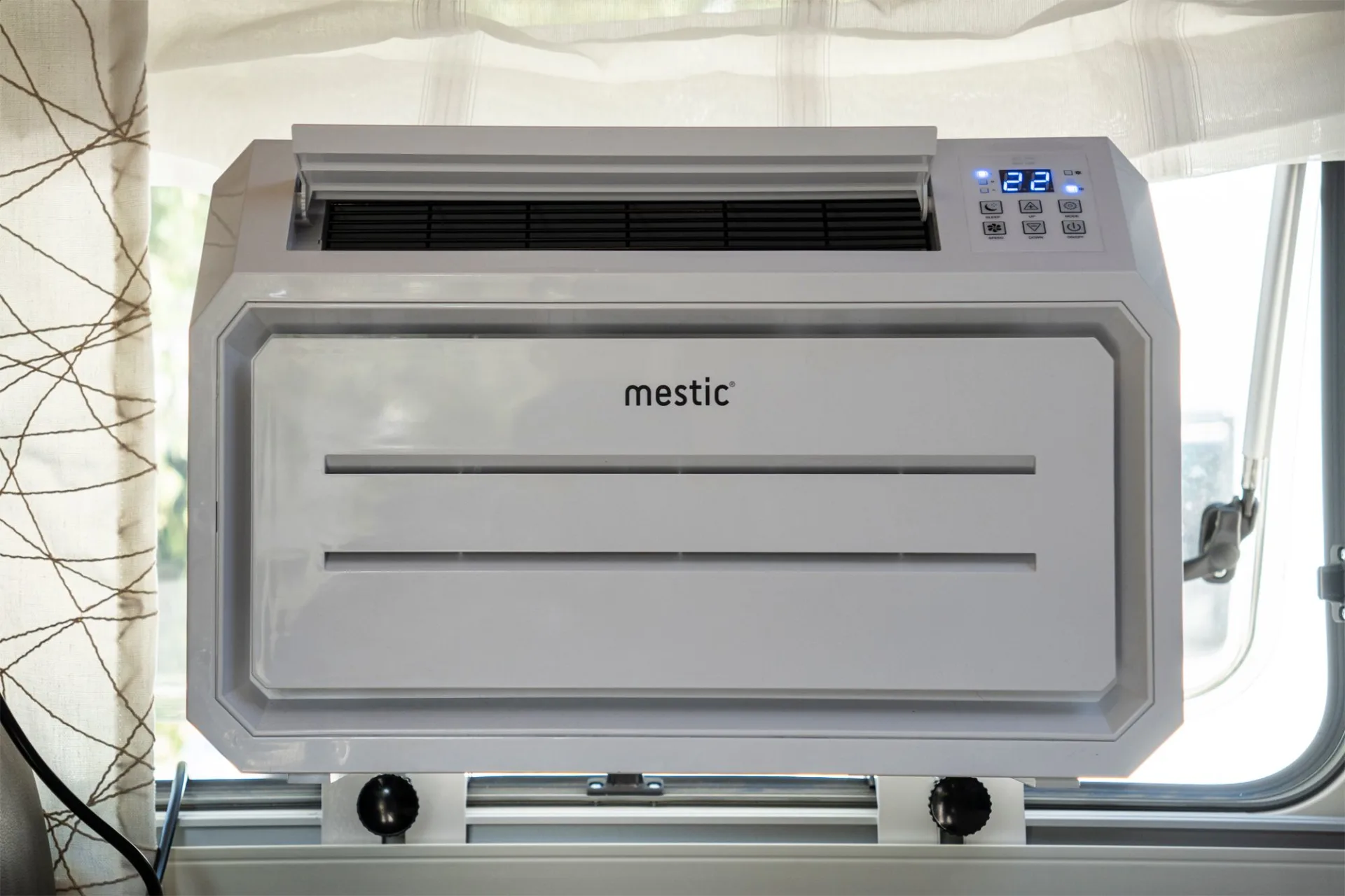 Die Mestic Split-Klimaanlage SPA-3000 ist kompakt und bietet dennoch eine Kühlleistung von 895 W für Fahrzeuge bis zu 5 m Länge. Mit einer Nennleistungsaufnahme von nur 405 W eignet sie sich ideal für Campingurlaube. Die Klimaanlage verfügt über drei Lüftungsstufen, einen Geräuschpegel von 53 dB und einen Nachtmodus für ungestörte Nachtruhe. Die innovative Split-Klimaanlage besteht aus zwei Teilen, die durch flexible Rohre durch das Fenster miteinander verbunden sind. Die Montage ist einfach mit einer verstellbaren Halterung, passend für die meisten Wohnwagen und Wohnmobile. Die Außeneinheit ist wetterfest (Schutzart IPX4) und kann während eines Regenschauers draußen bleiben. Bei Bedarf lässt sich die Klimaanlage leicht entfernen.
