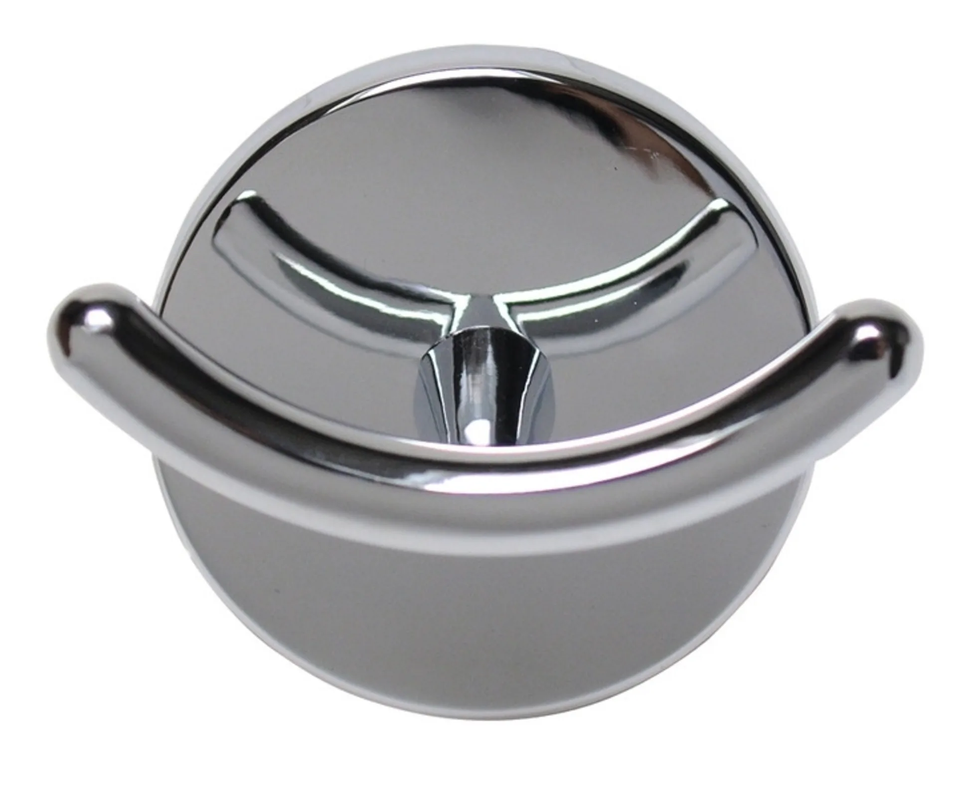 Doppelkleiderhaken rund Metall verchromt. Vielseitig einsetzbarer Kleiderhaken zum Nachrüsten für Caravans und Reisemobile. Einfache Schraubmontage. Mit anschraubplatte, Ø6 cm, Breite 7 cm, Tiefe 5 cm