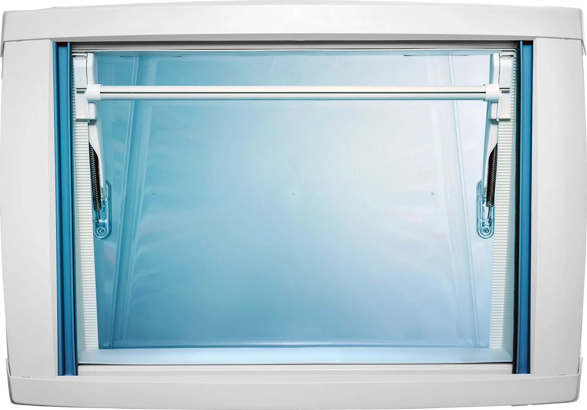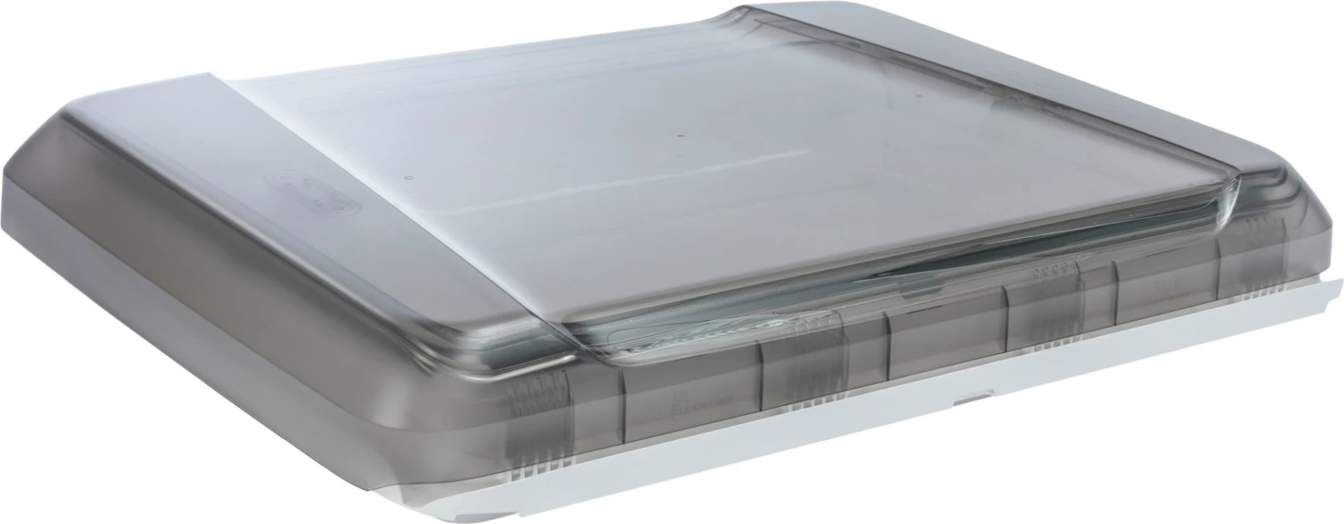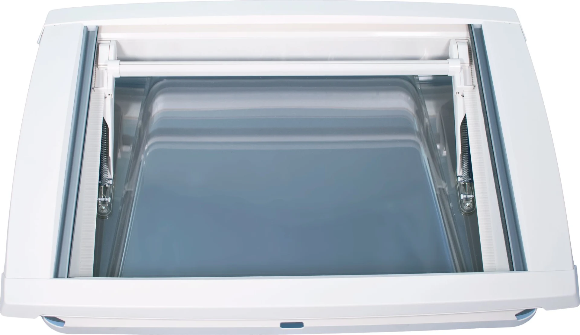 Die VisionStar L Pro Rauchglas Dachhaube von MPK mit Doppelverglasung aus schlagzähem Polycarbonat mit modernen Design. Dank der flachen Haube, sind die Fahrgeräusche im Inneren sehr gering. Die einfache Einhand-Bedienung mittels Bügelgriff erlaubt eine stufenlose Aufstellung bis zu 55°. Bei Betätigung de Aufstellmechanismus ver- und entriegelt die Haube automatisch. Der doppelwandige Außenrahmen sorgt für eine bessere Isolation. Der Innenrahmen mit Doppelplissee schützt zuverlässig vor Sonneneinstrahlung und Insekten. Rauchglashaube für einen besseren UV-Schutz. Dauerlüftung bis zu 150 cm².