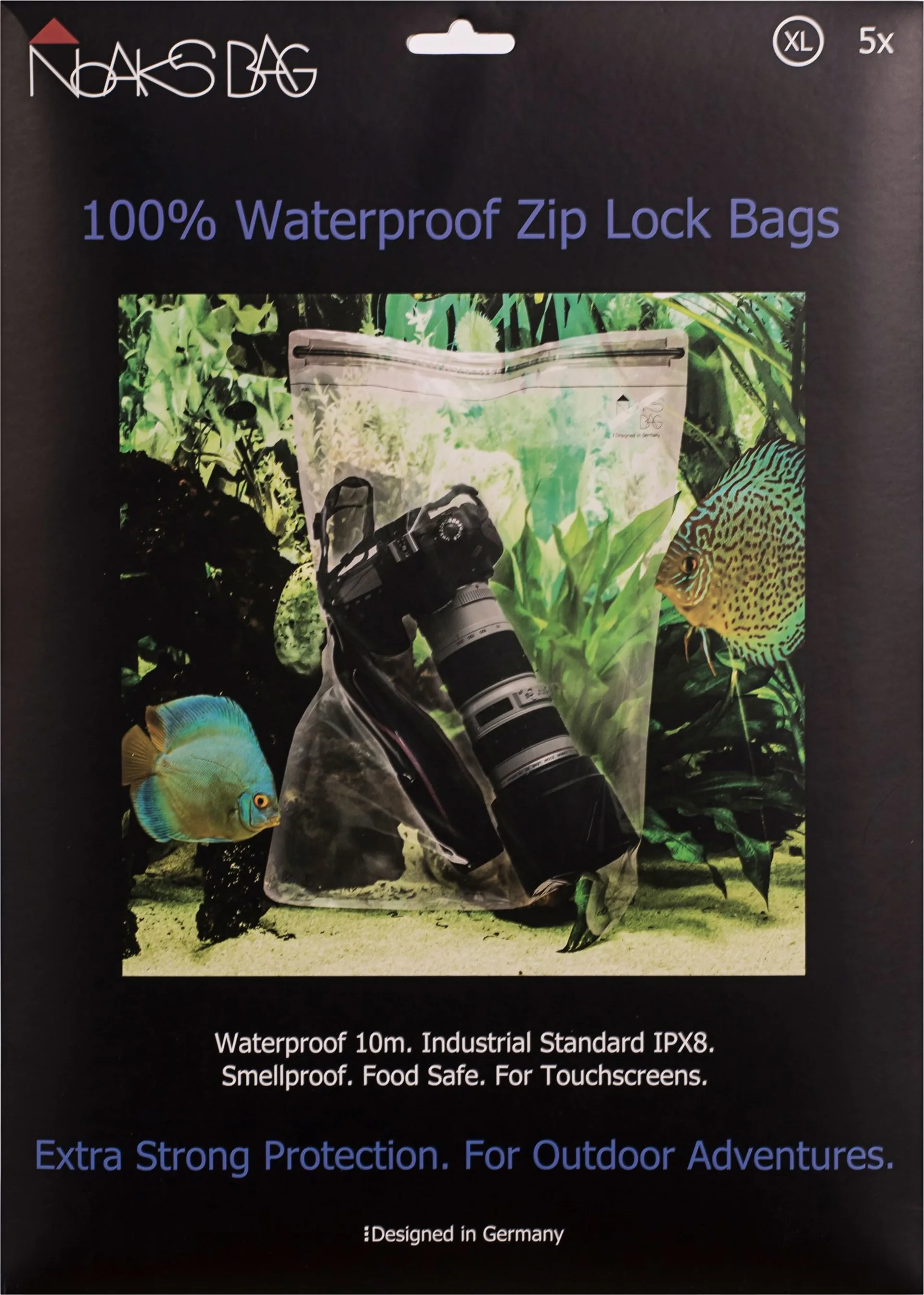 Die Noaks Bags bieten maximalen Schutz für Wertsachen, Lebensmittel und elektronische Geräte. Sie sind wasserdicht nach IPX8, geruchsdicht, lebensmittelsicher und bestehen aus einem extrem robusten Verbundmaterial. Dank des innovativen Doppellippenverschlusses lassen sie sich einfach und sicher verschließen.