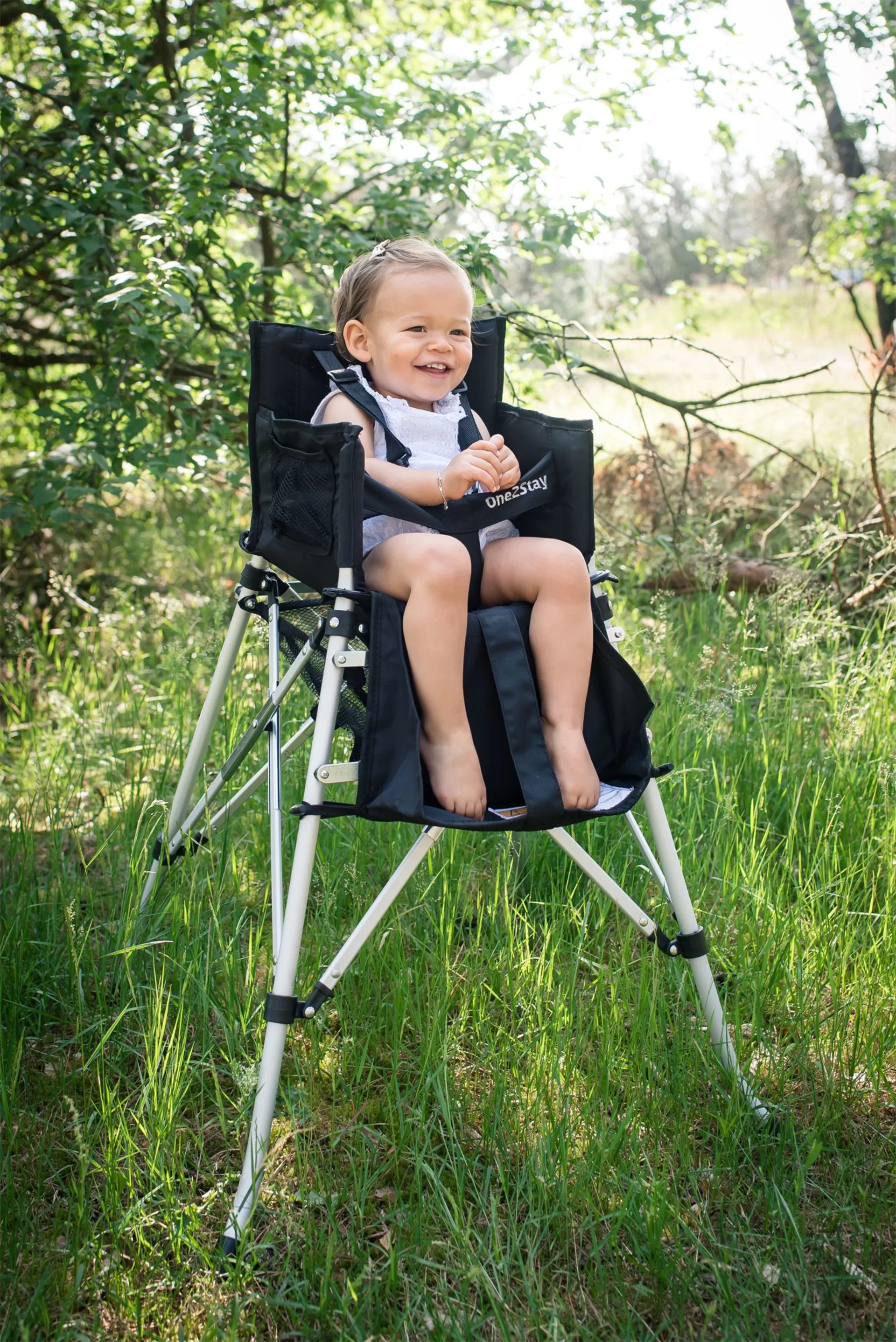 Dieser superleichte Kinderhochstuhl mit integriertem Esstisch ist der perfekte Camping-Reisebegleiter für Familien mit Babys (ab 6 Monaten) und Kleinkindern (bis 3 Jahre). Er ist in einem praktischen Tragebeutel verpackt und lässt sich sekundenschnell entfalten. Mit einer Sitzhöhe von 60 cm kann er ganz einfach an den Tisch geschoben werden. Das Gestell ist aus Aluminium, der pflegeleichte Bezug ist komplett abnehmbar und bei 30°C waschbar (im Schonwaschgang).