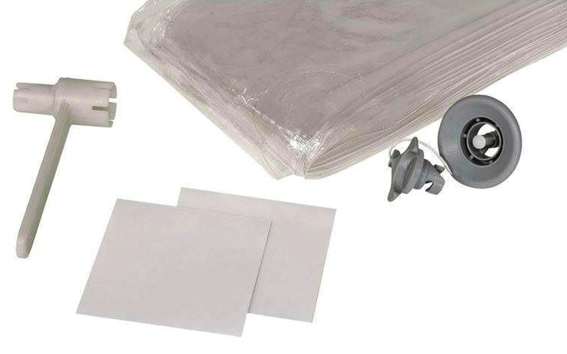 1 Luftschlauch, 1 Ventil für aufblasbare Zelte, 1 Ventilwerkzeug, 2 Klebestreifen
