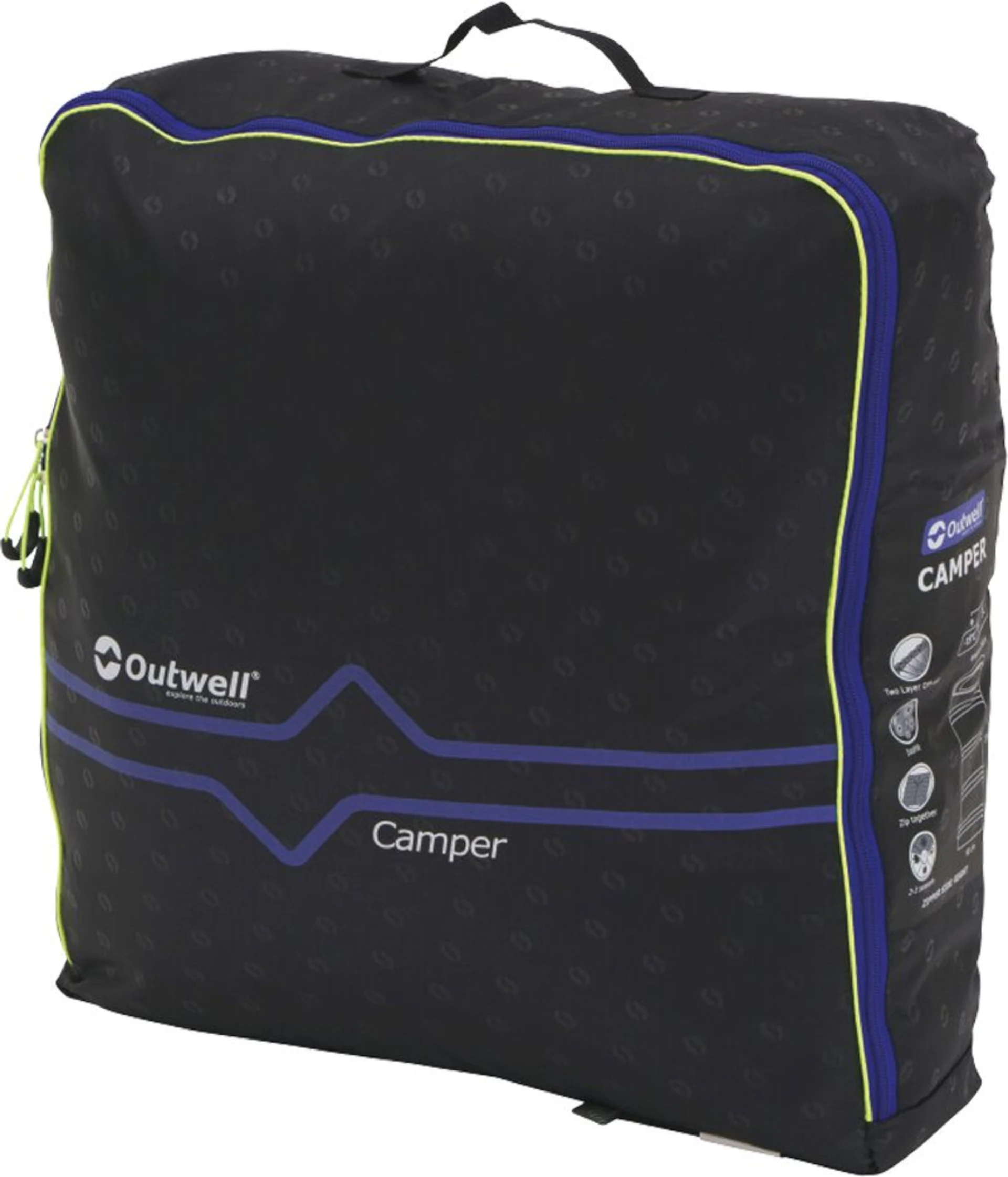 Der Schlafsack Camper von Outwell zählt bei Familien seit jeher zu den beliebtesten Modellen. Mit diesem Schlafsack kannst du richtig schöne Sommerurlaube verbringen. Kuschel dich in den weichen Innenbezug in Kontrastfarben, lasse dich von der flauschigen Dämmung warm halten und fühle dich nach einer Nacht in dem atmungsaktiven Material morgens frisch und ausgeruht. Das integrierte Kissen und die Kapuze mit Reißverschluss für kältere Nächte sorgen dafür, dass du jede Nacht gut schlafen kannst. Du kannst auch zwei Schlafsäcke mittels Reißverschluss zu einem Doppelschlafsack verbinden. Mit dem leicht zu öffenenden und schließenden Zweiwegereißverschluss mit Autolock ist der Schlafsack leicht händelbar. Er eignet sich für eine Körpergröße von 200 cm.
