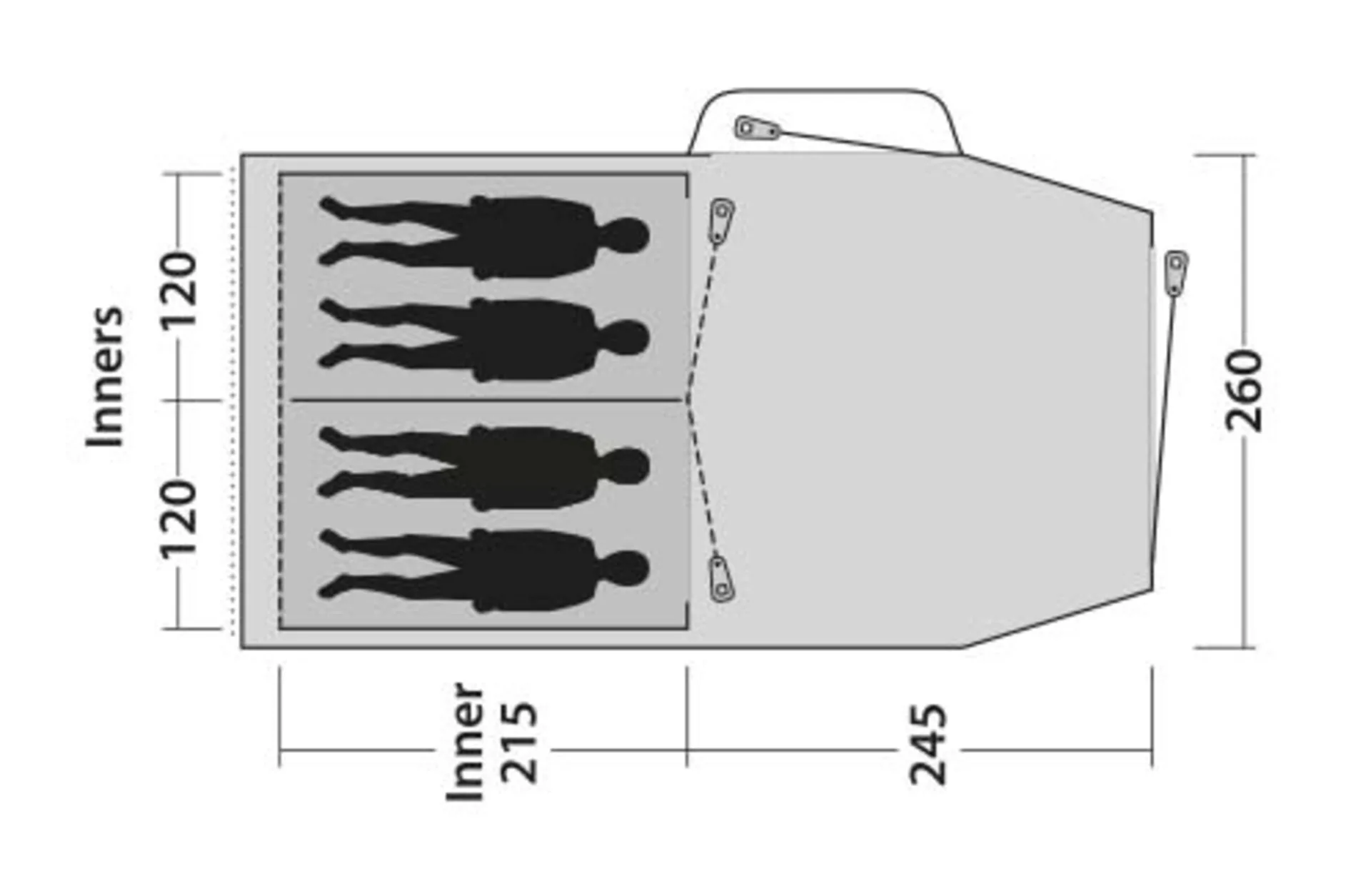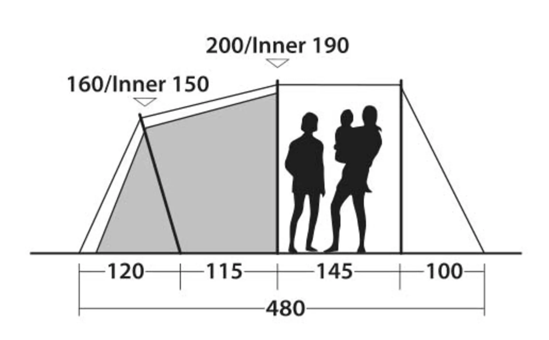 Outwell-Empfehlung für komfortablen Schlafplatz - der Industrie-Standard definiert 60 cm pro Person - Wir wissen, dass dies nicht genug Platz für eine Luftmatratze oder Luftbett bietet. Unser Outwell-Schlaf-Komfort ist mit 70-80 cm pro Person berechnet.