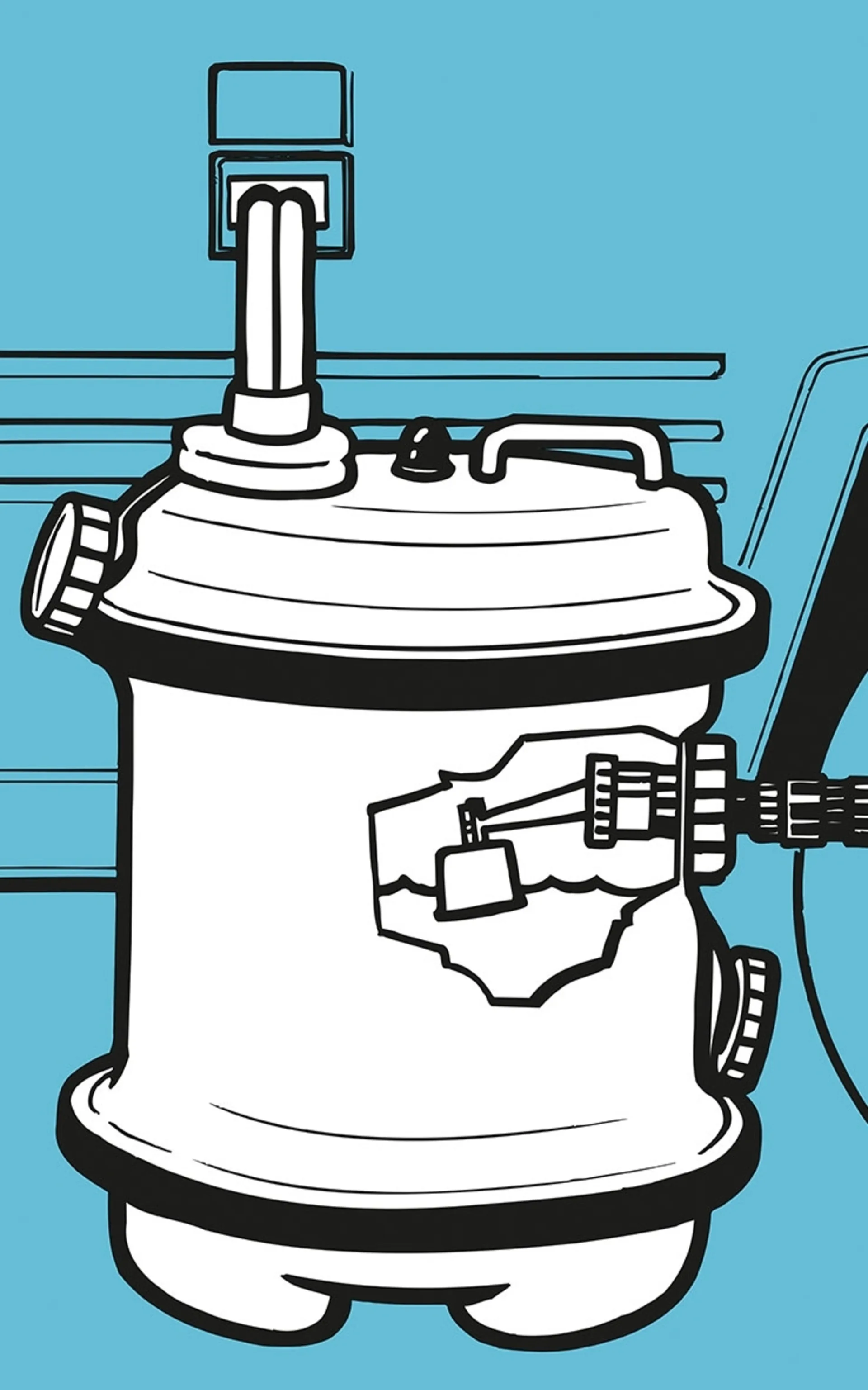 Einschließlich Qualitäts-Füllschlauch mit Kupplung zum Anschluss an Wasserhahn, leicht abnehmbarer, zusammenklappbarer Griff mti Edelstahl-Kugelgelenken.
