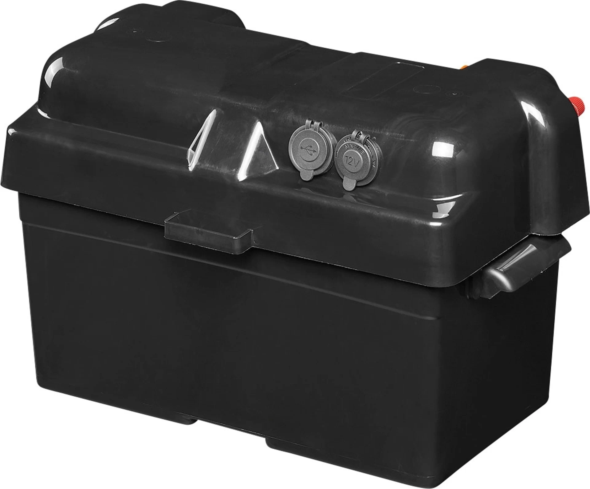 Die Batteriebox V02 mit integrierten Anschlüssen und IP44 schützt Ihre Batterie hervorragend vor Spritzwasser und Verschmutzung. Mit dem eingebauten Voltmeter haben Sie die Ladekapazität Ihrer Batterie immer im Blick. Inkl. Befestigungsmaterial.