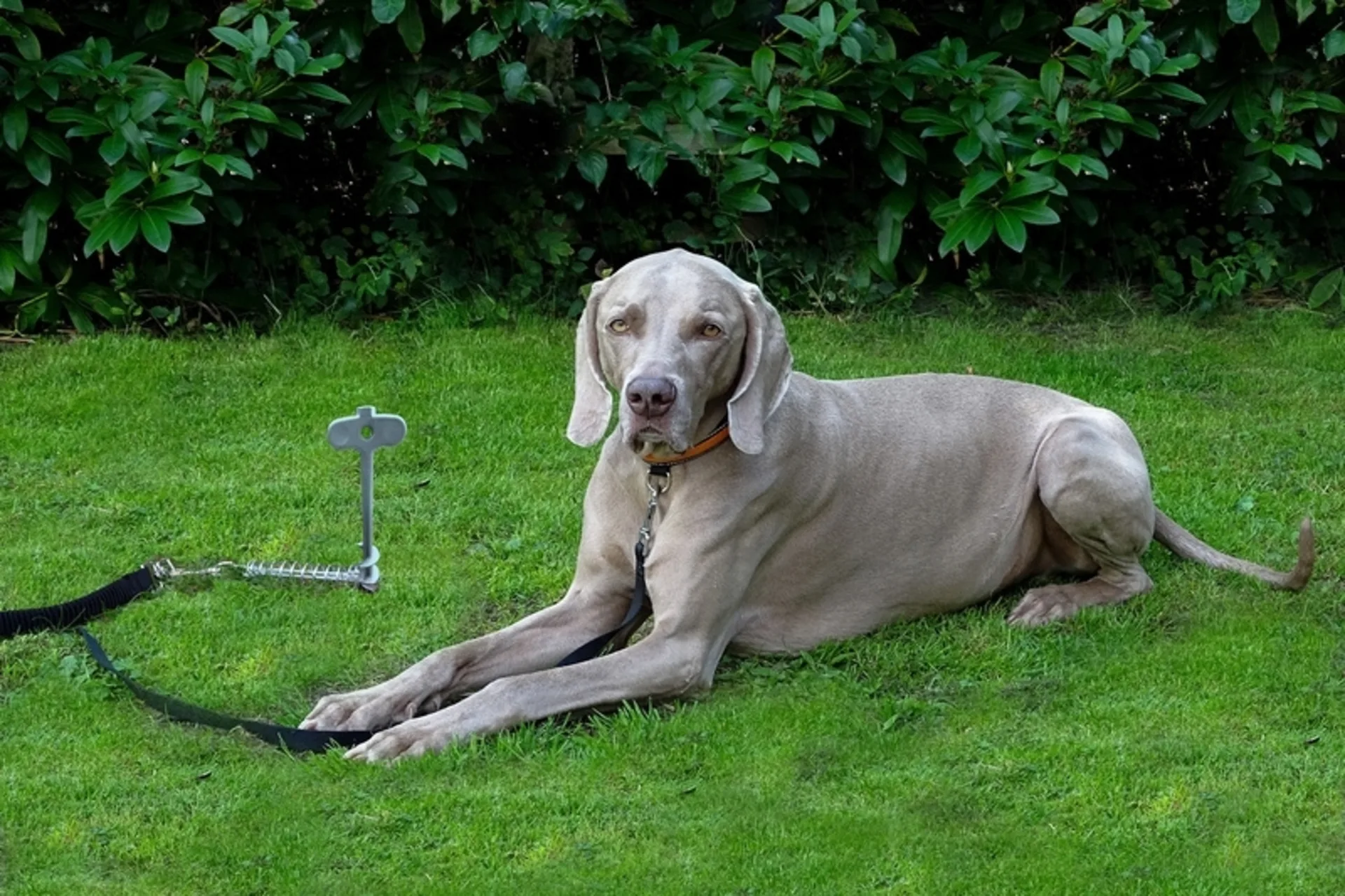 - Erdbodenanker mit Stoßdämpfer zum Anleinen von Hunden, Katzen etc.