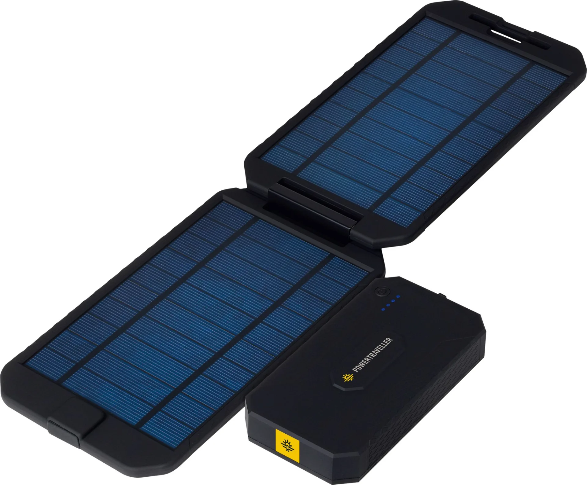Vielseitiges Netzteil zum Laden von Smartphones, Action-Kameras, SAT-Telefone und andere 5V- und 12V-Geräte mit der Kraft der Sonne. Kompaktes, leichtes Clamshell-Solarpanel. Öffnet sich bis zu einem Winkel von 220°, was ideal ist für die Befestigung am Rucksack oder Zelt. Nutzt Solarenergie zur Ladung. CO2-freie Stromerzeugung.