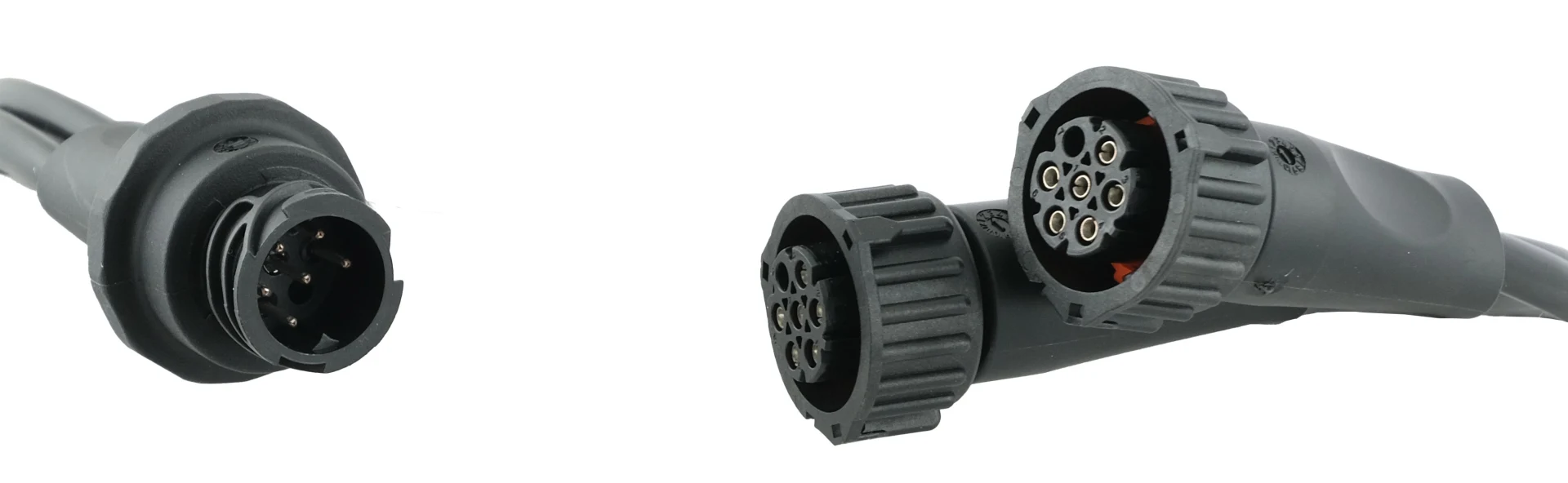 - 1 x 7-polig Stecker auf 2 x 7-polig Buchse mit 0,5m Kabel (6x1,0mm2)