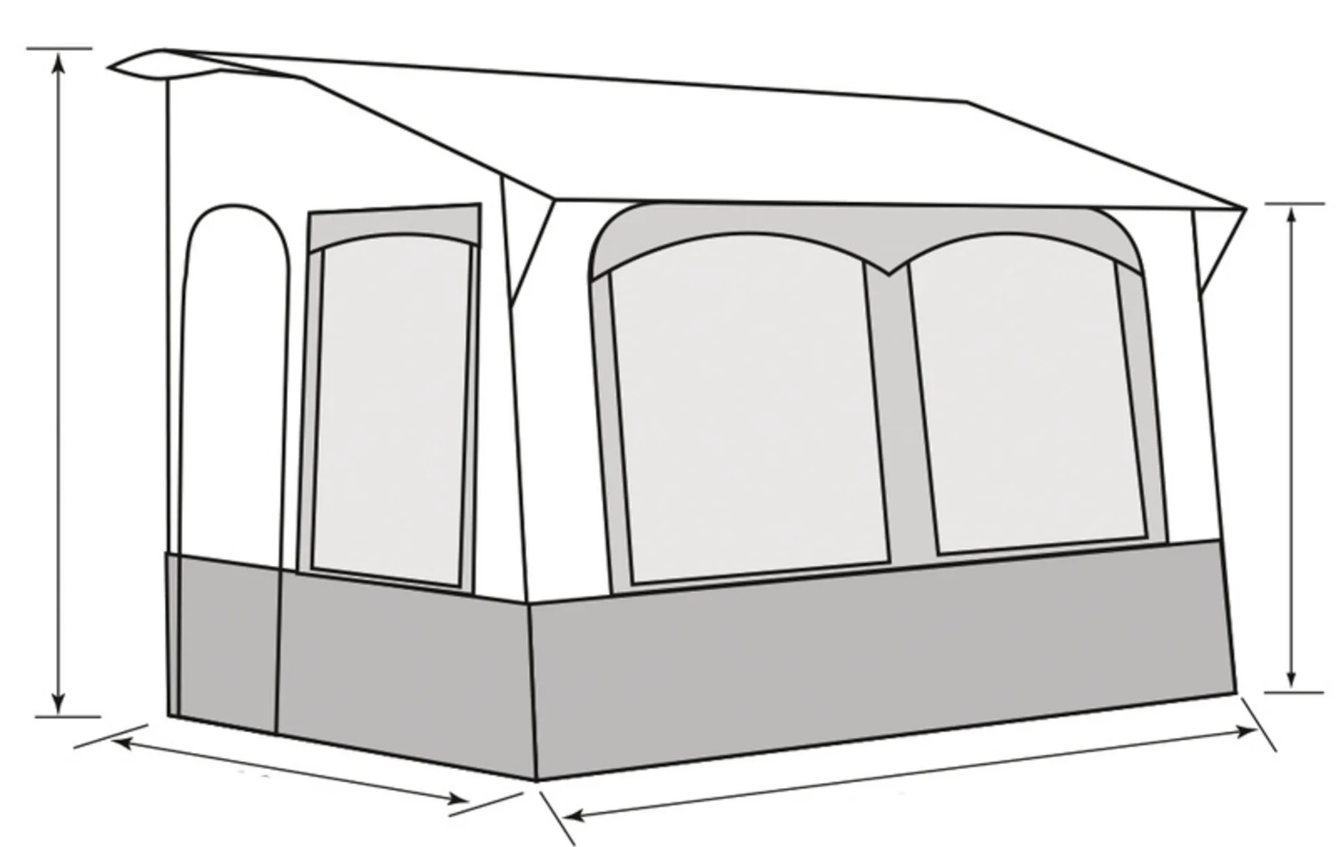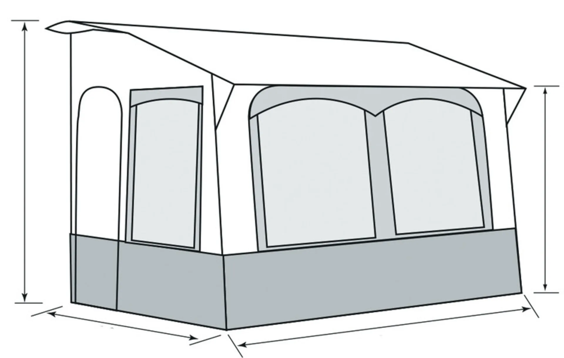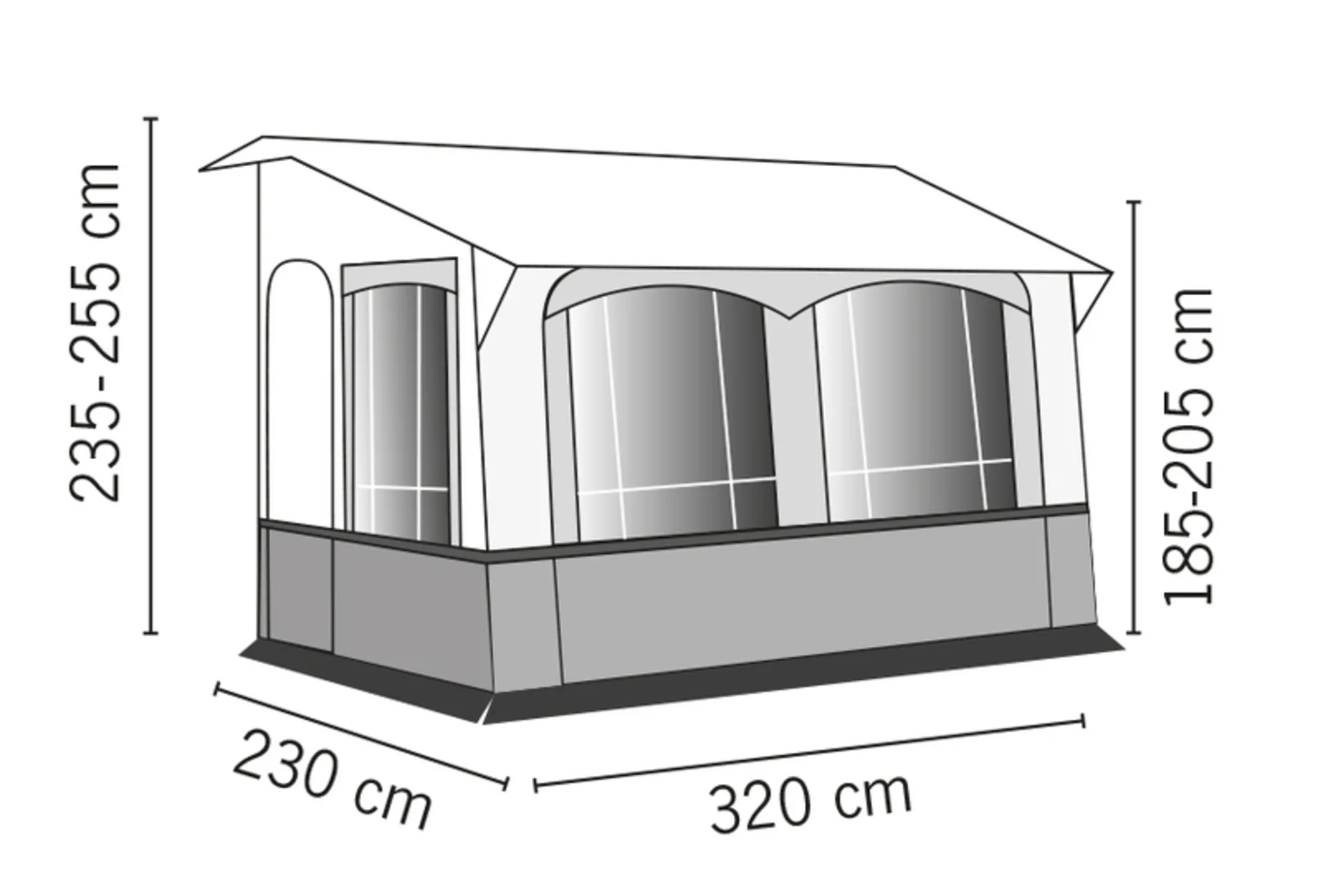 Ganzjahresvorzelt CASA ROYAL in den Breiten 320 cm + 390 cm ist für Sommer & Winter geeignet. Die Seitenwände aus spinndüsengefärbtem Isoacryl bieten ein angenehmes Wohnklima wie Baumwolle. Frontwand mit 4-Wege Reißverschluss von beiden Seiten zu öffnen und herausnehmbar. Frontfenster aus Folie mit Vorhängen. Seitenfenster oben mit Moskitonetz und Folienabdeckung außen, unten in Folie mit Vorhängen. Gestänge serienmäßig mit zusätzlichen Orkanstützen neben den Türen, Verandastab und Firstverstärkung.
