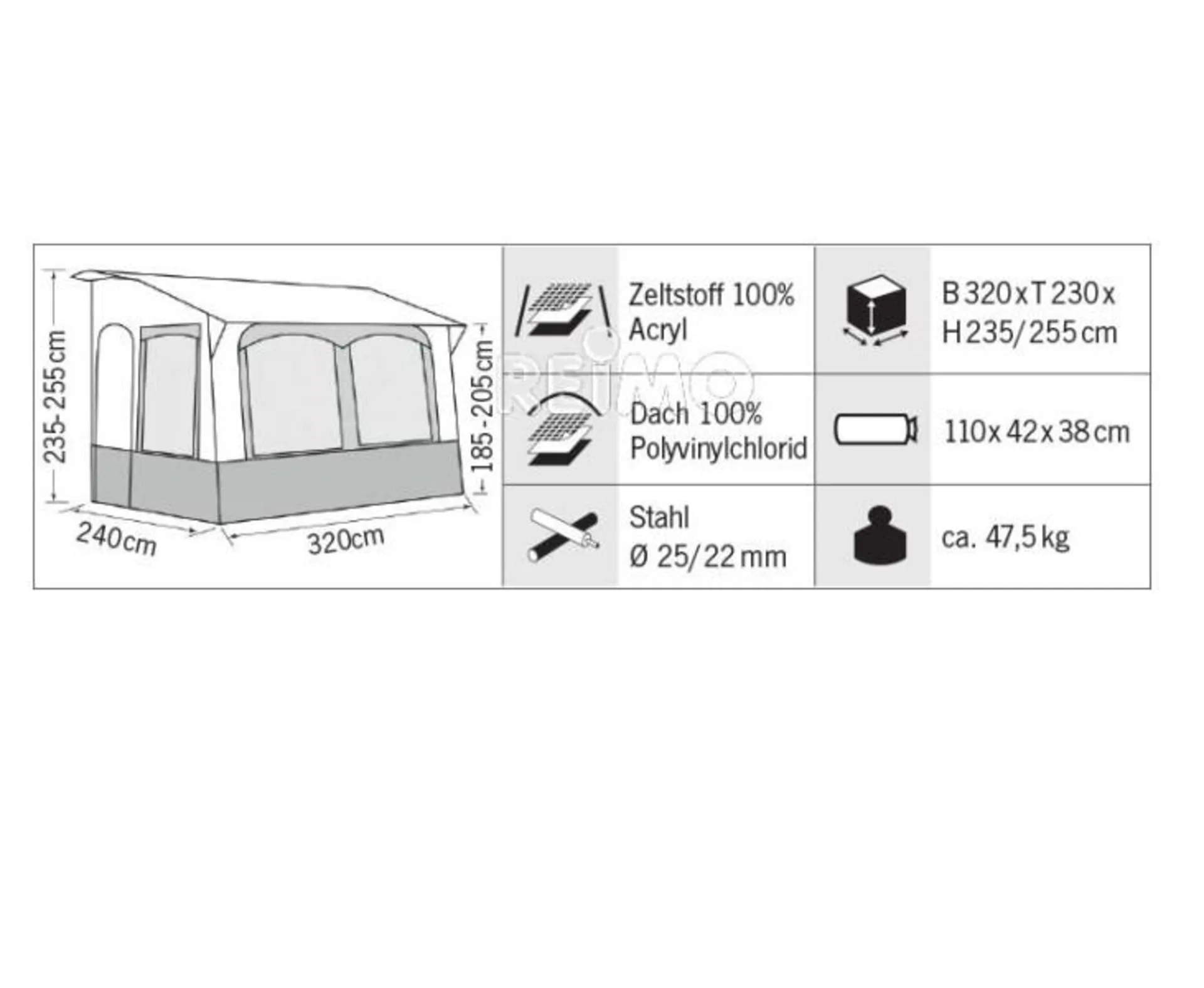 - Material Wände: 100% Acryl (atmungsaktiv)