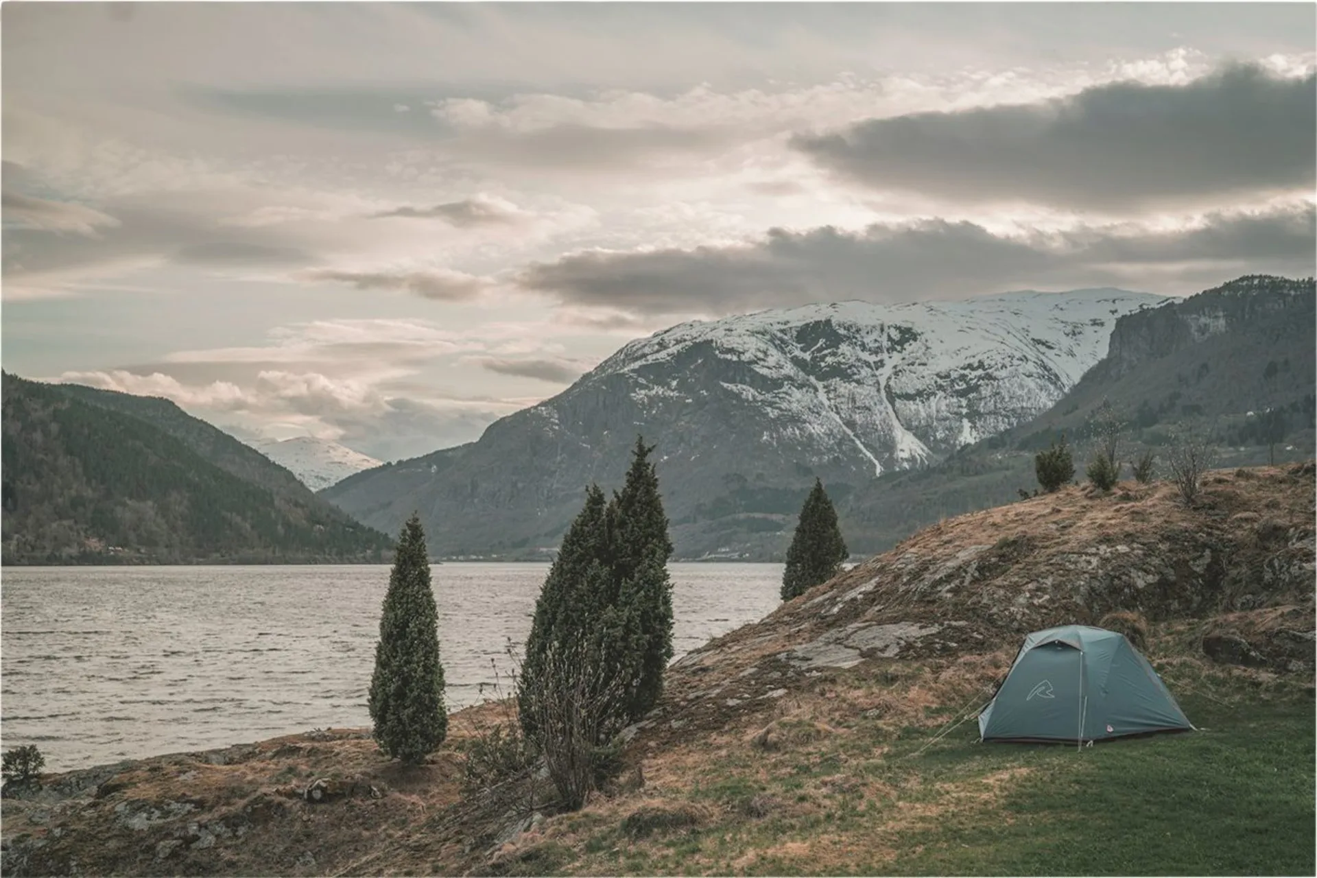 Die Kombination aus Kuppelform und kurzem Querfirstmast bietet flexiblen Wohn-, Koch- und Stauraum mit hervorragender Innenhöhe und -breite, so dass die beiden Insassen nebeneinander sitzen können. Die Zwillingstüren ermöglichen jedem Camper einen einfachen Zugang und Optionen bei der Türöffnung, um sich vor Wind zu schützen und eine Querbelüftung zu gewährleisten. Verriegelungsspitzen und doppelte Ösen in robustem Gurtband sichern die Innenstangen mit der Firststange.