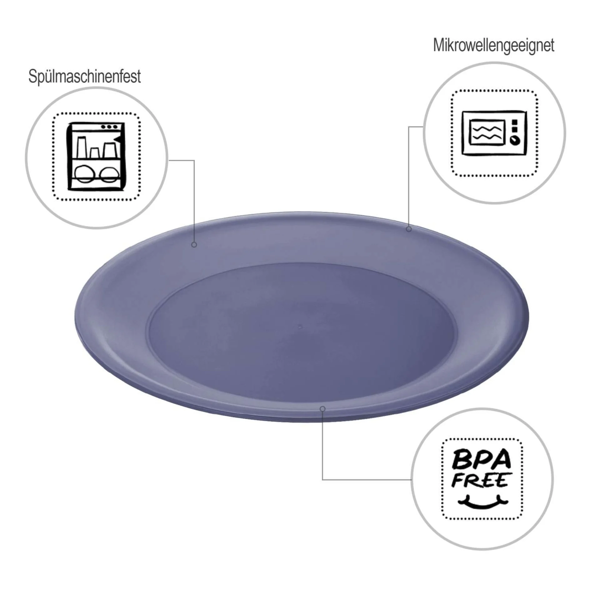 Mit dem flachen Teller Caruba haben Sie einen stilvollen Alltagshelfer zur Hand, der praktischerweise nicht zu Bruch gehen kann: Aus robustem Kunststoff gefertigt, ist er äusserst stabil und dabei wunderbar leicht. Er kann daher nicht nur in den eigenen vier Wänden, sondern auch beim Camping, bei Gartenfesten und ähnlichen Anlässen verwendet werden. Ob Frühstücksbrötchen, Mittagessen oder Kuchen: Der flache Teller eignet sich als Essgeschirr ebenso wie zum Servieren von kleineren Snacks. Seine strukturierte, griffige Oberfläche bietet angenehmen Halt und verhindert, dass der Teller aus der Hand rutscht.