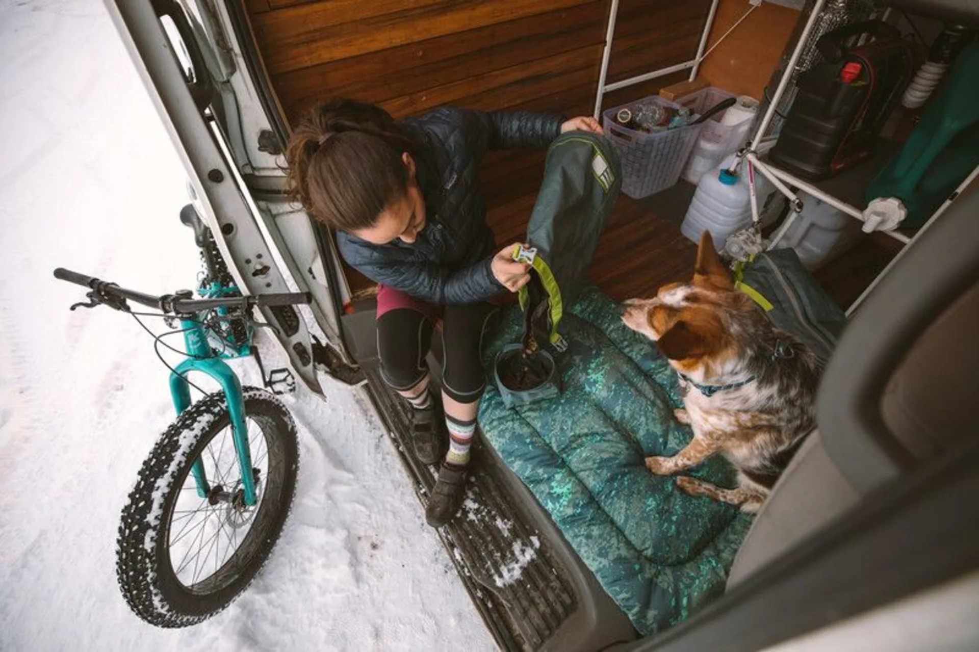 Ein vielseitiger und praktischer Ruheplatz für Hunde, die sich vor, nach oder auf dem Weg zum nächsten Abenteuer niederlassen und ein Nickerchen machen wollen. Konstruiert als ein bequemer, leicht zu verstauender und leicht zu reinigender Schlafplatz.